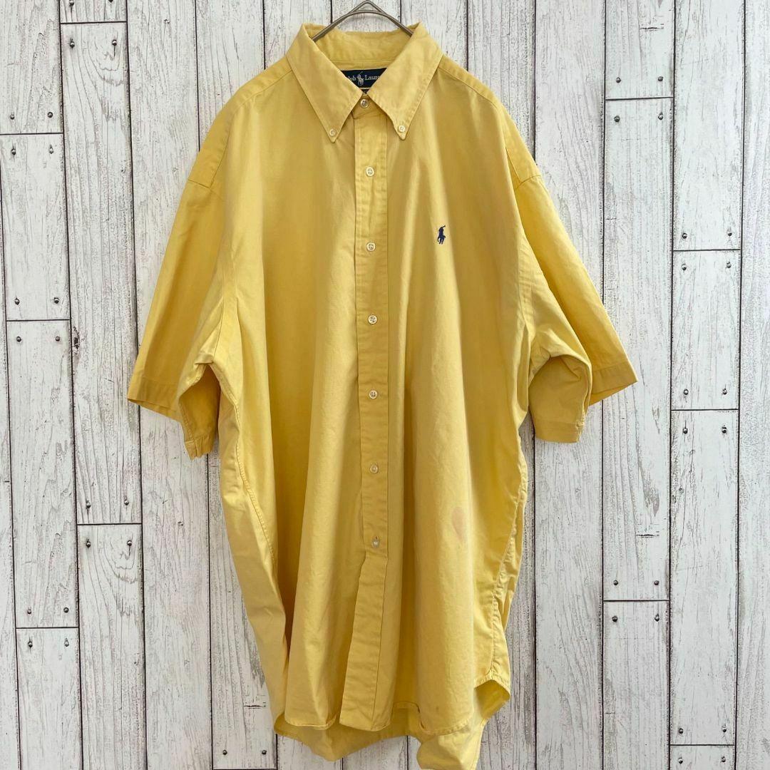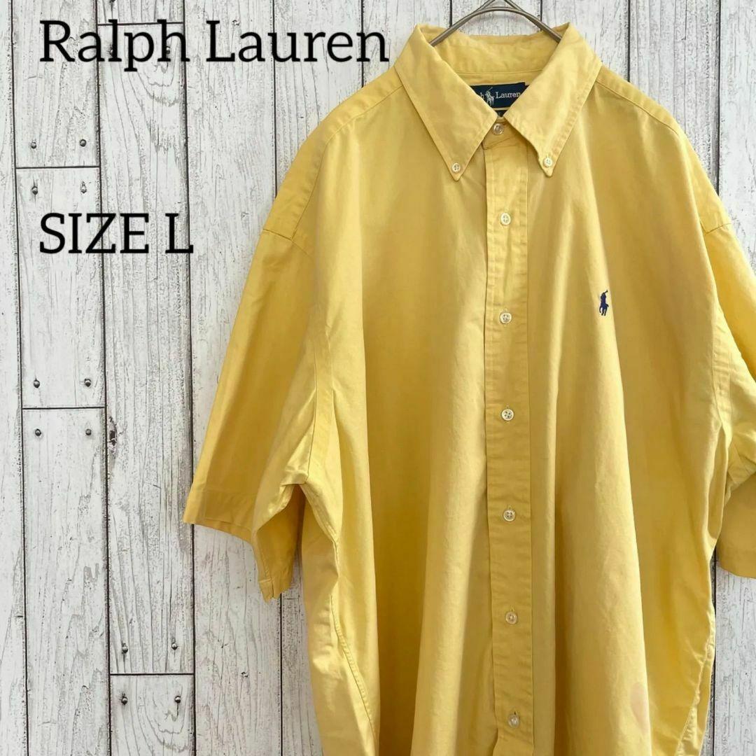 90s ラルフローレン メンズ 半袖 シャツ Lサイズ イエロー