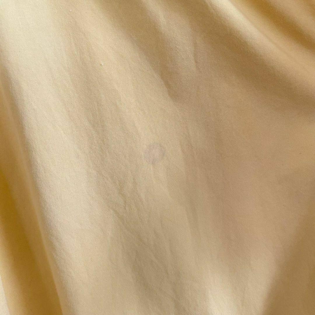 前側の下の方にピンク色、黒っぽいシミ、後ろ背中部分に円状のシミ、あとは全体的にいくつかの小さいシミがみられます。古着の使用感もある為、写真の方をよくご確認の上お願いいたします。