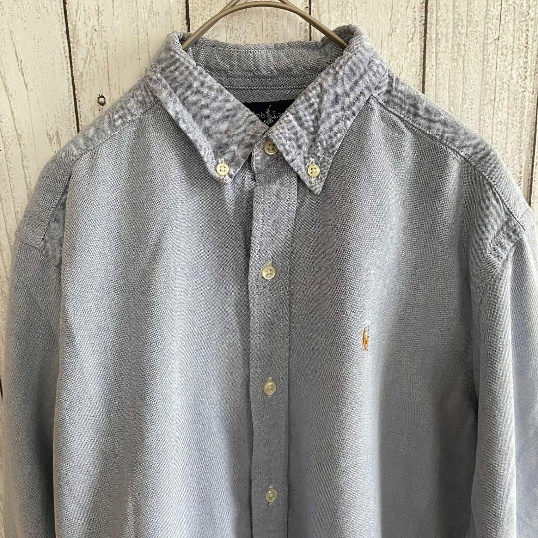 90s ラルフローレン メンズ 長袖 シャツ 18サイズ ブルー系 ポニー刺繍