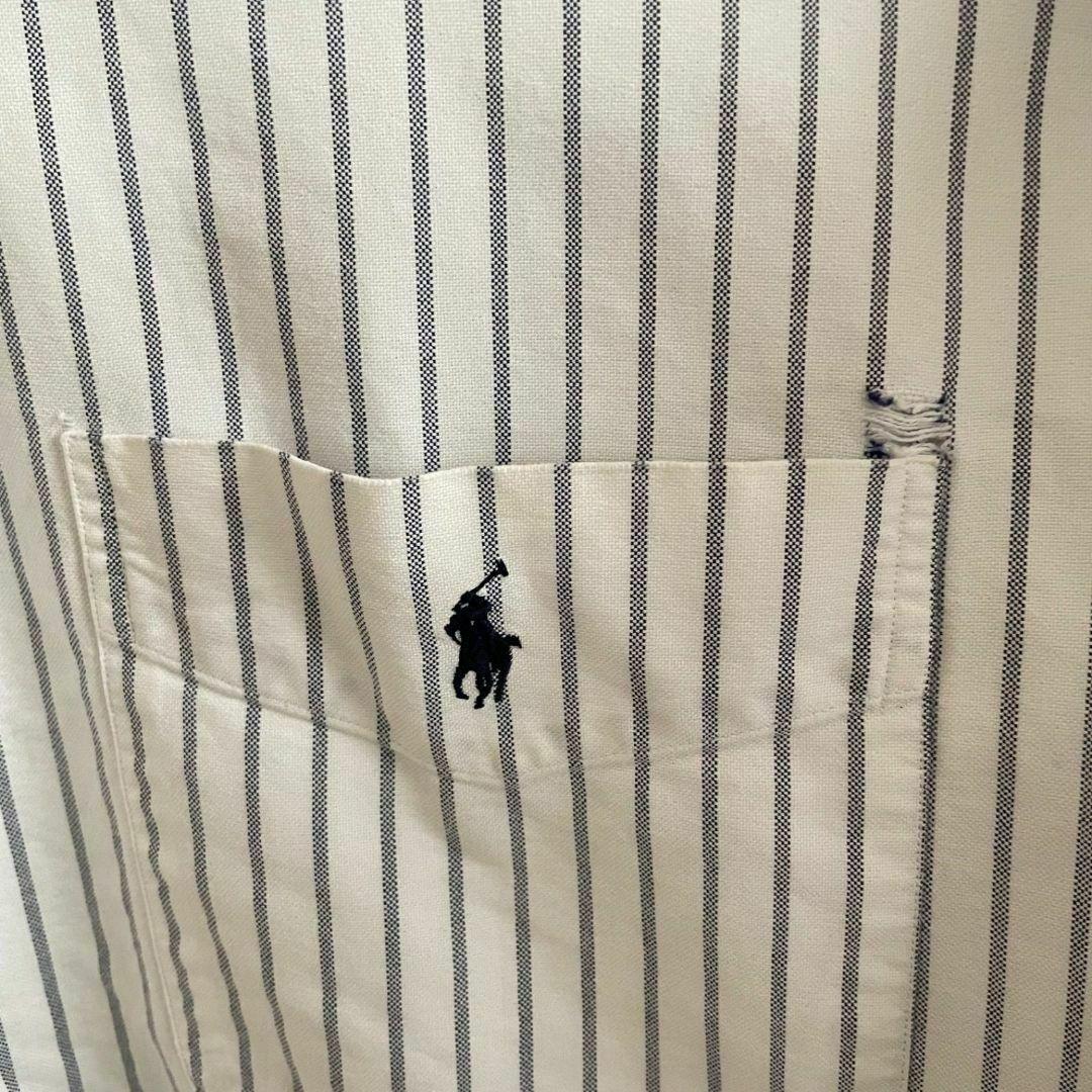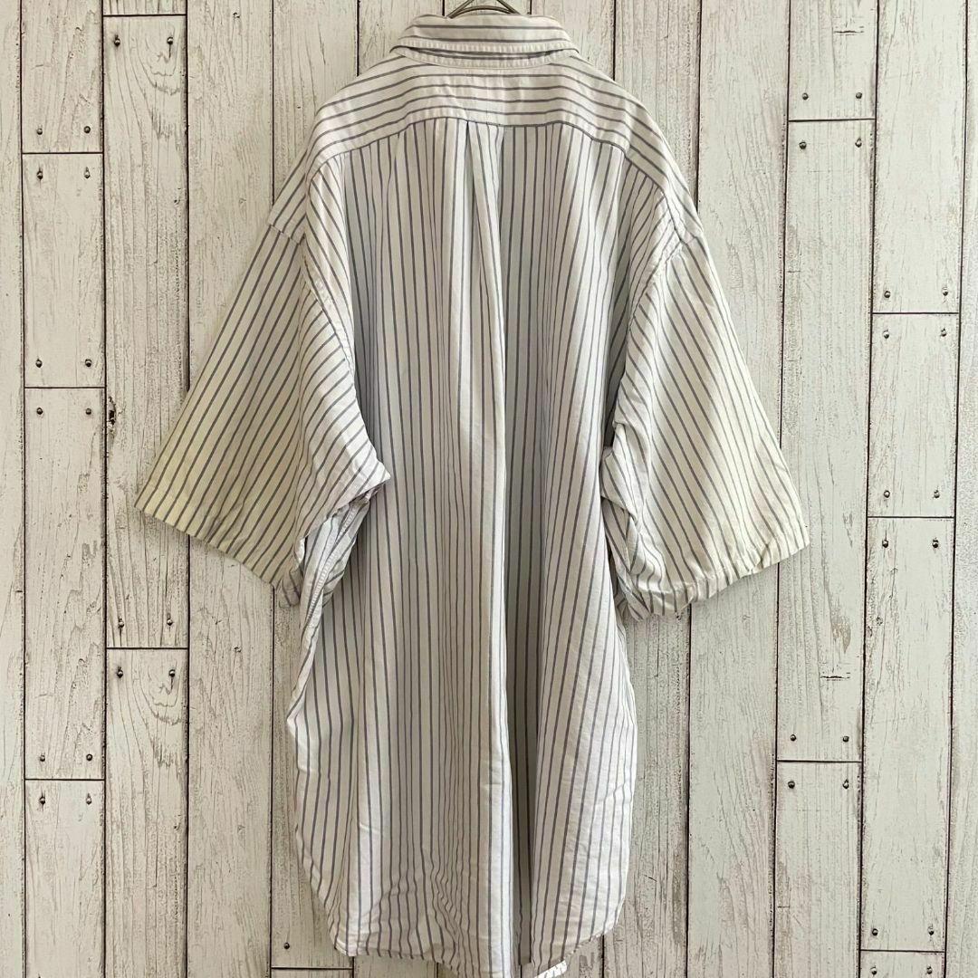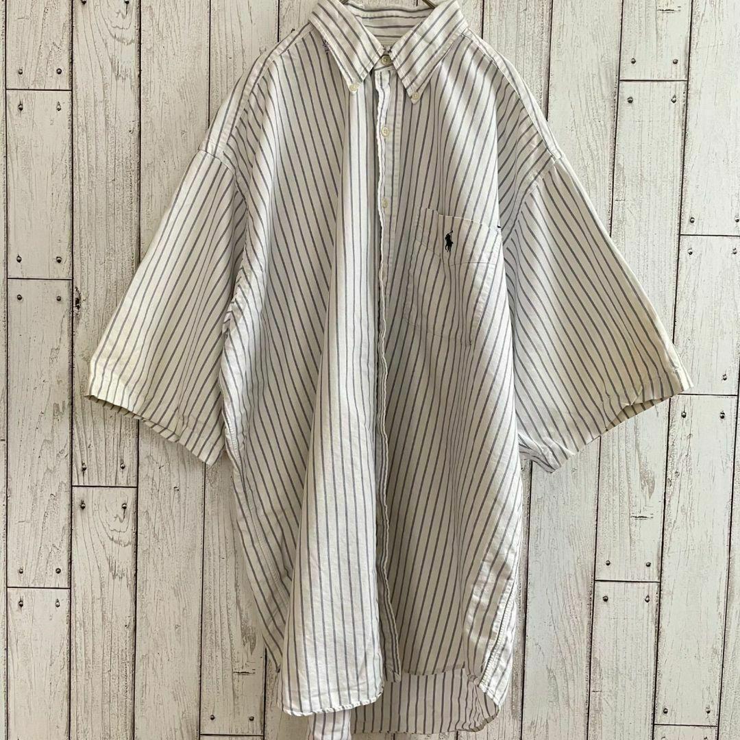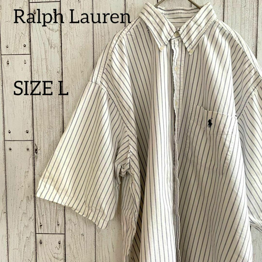90s ラルフローレン メンズ 半袖 シャツ Lサイズ ホワイト ストライプ柄