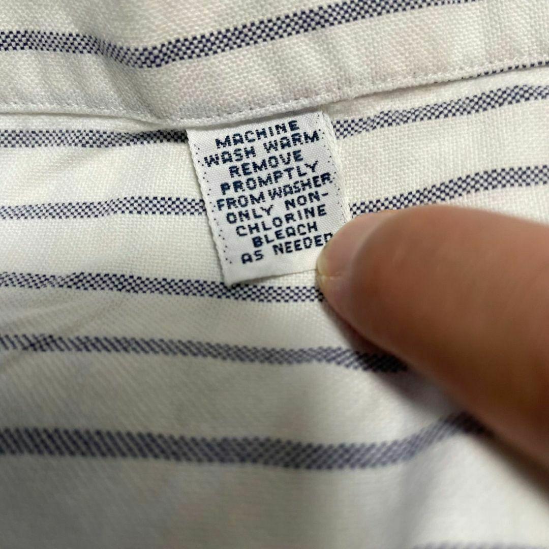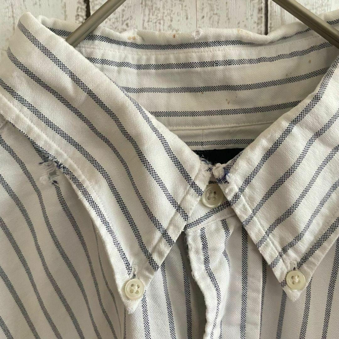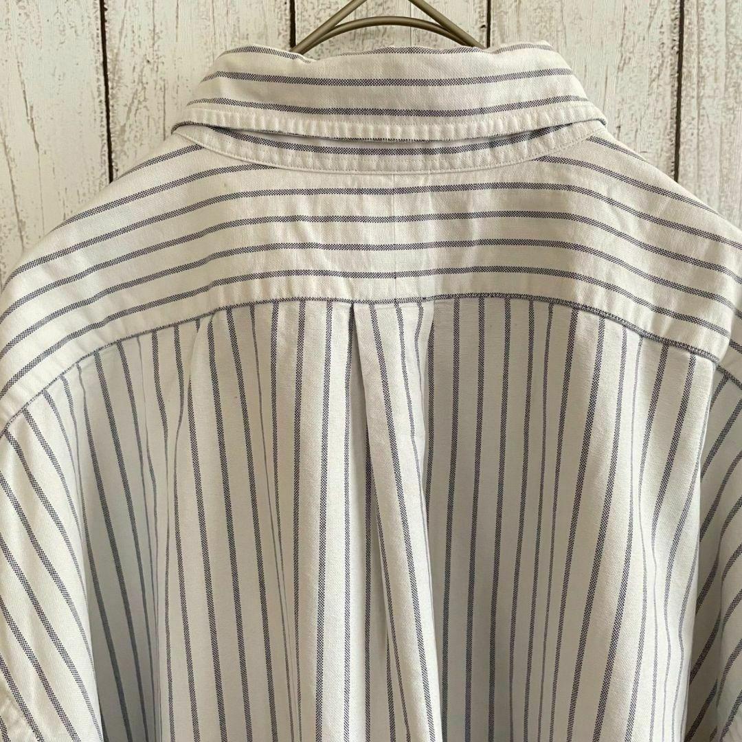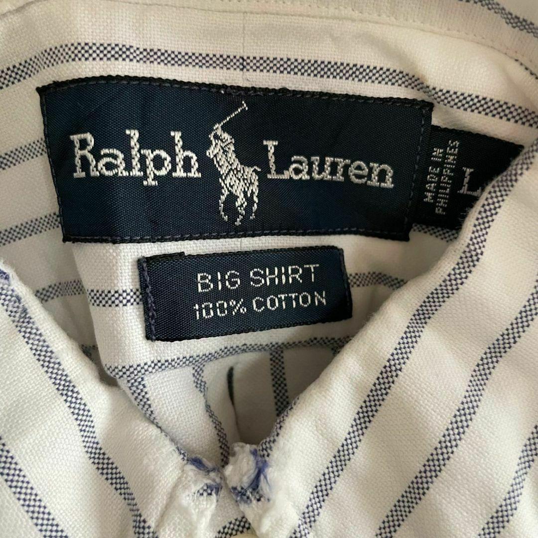 90s ラルフローレン メンズ 半袖 シャツ Lサイズ ホワイト ストライプ柄