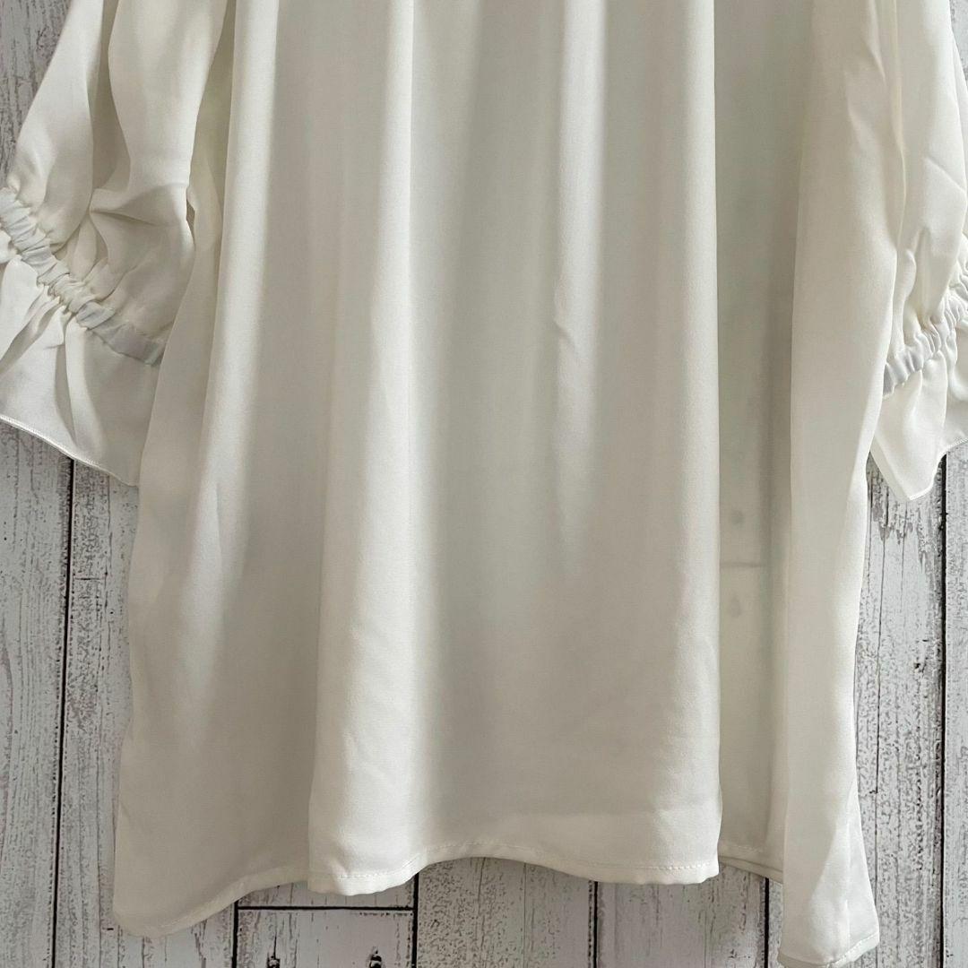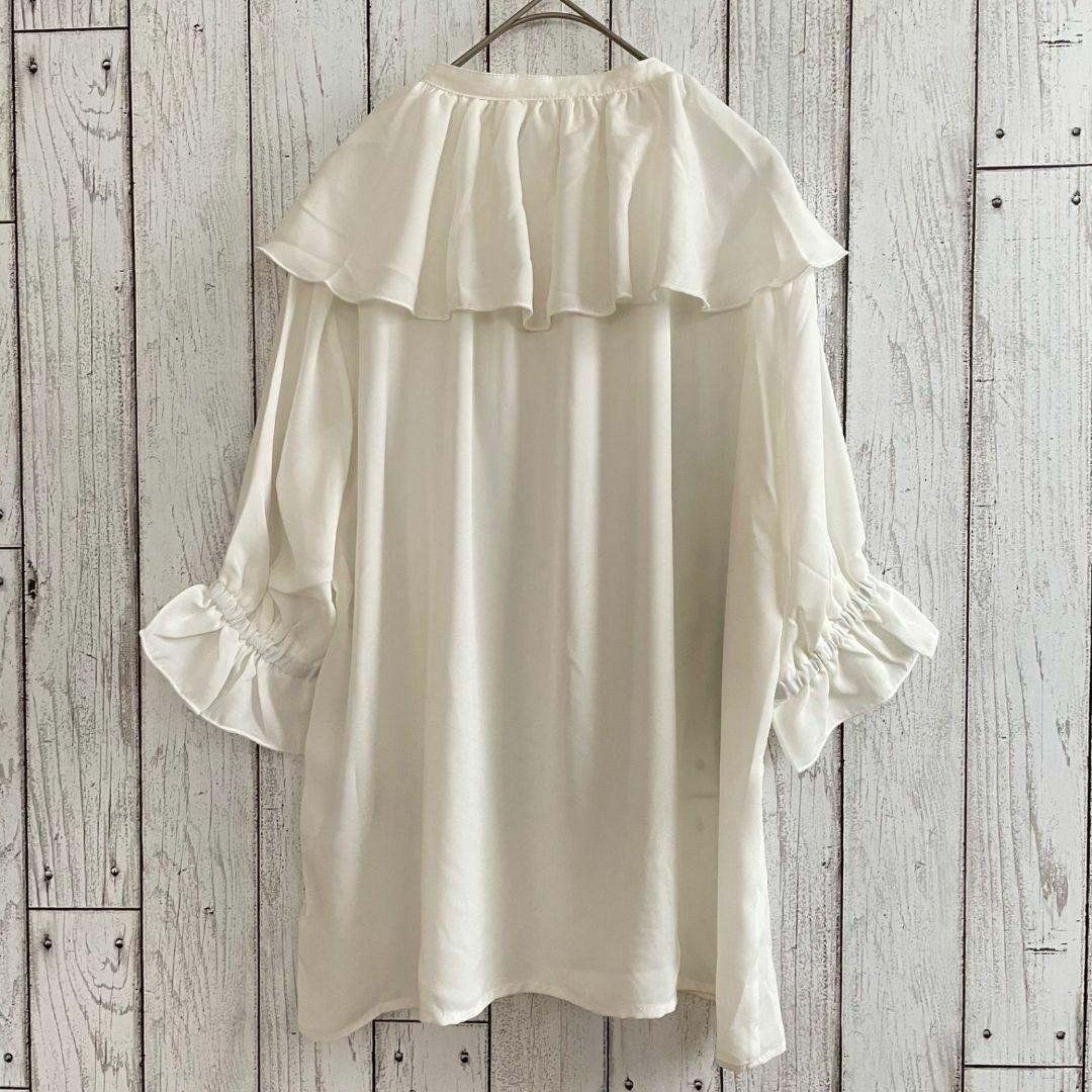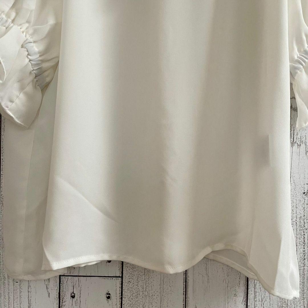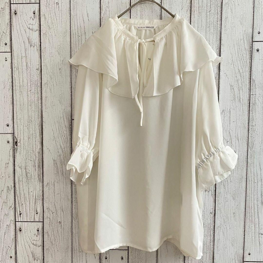 【新品未使用】テチチテラス レディース 5分袖 フリルカラーブラウス ホワイト