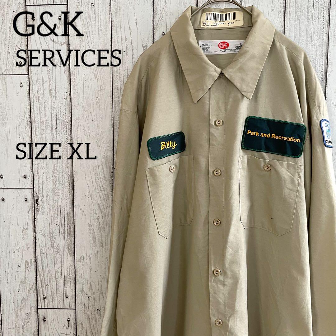 G&K SERVICES 長袖ワークシャツ XLサイズ ブラウン