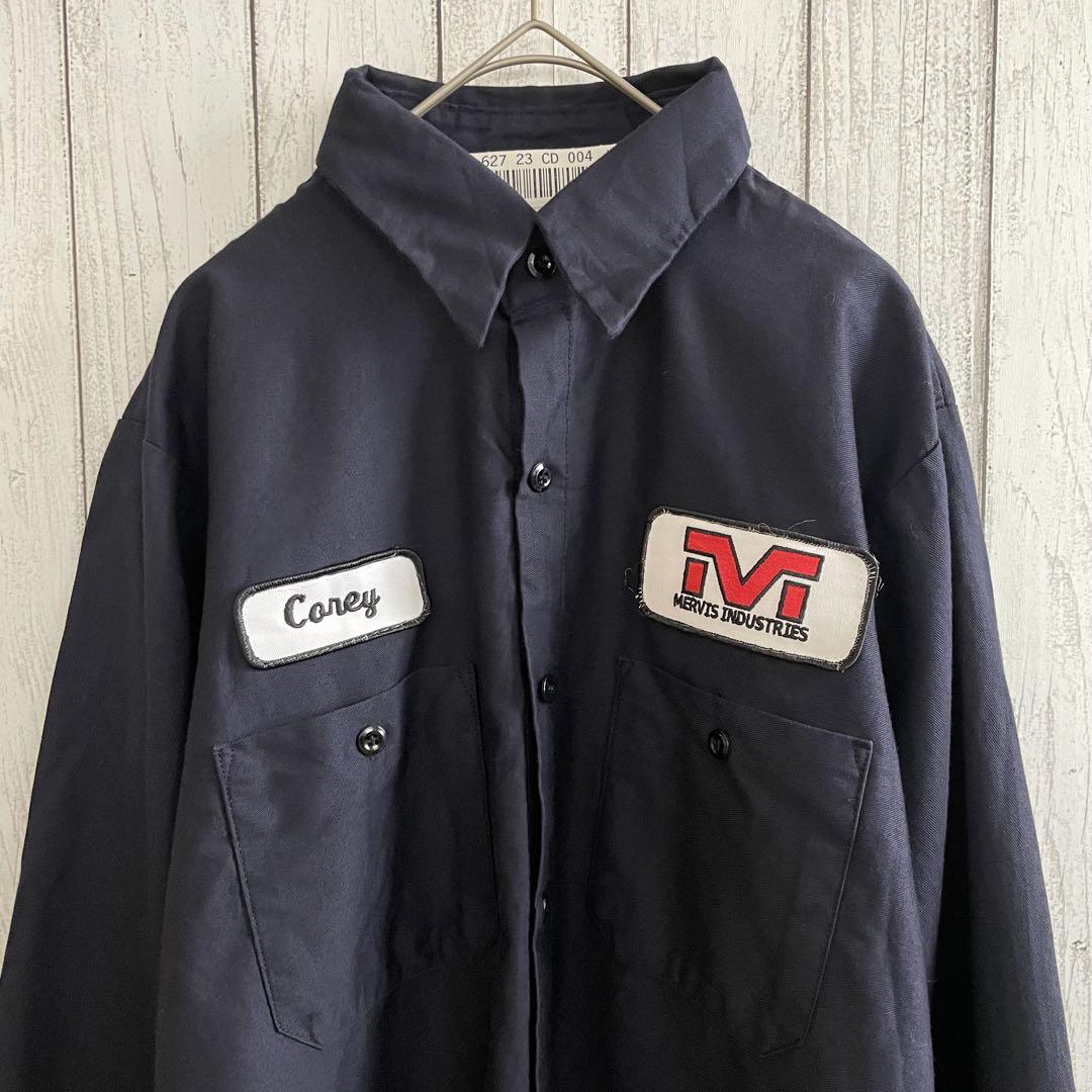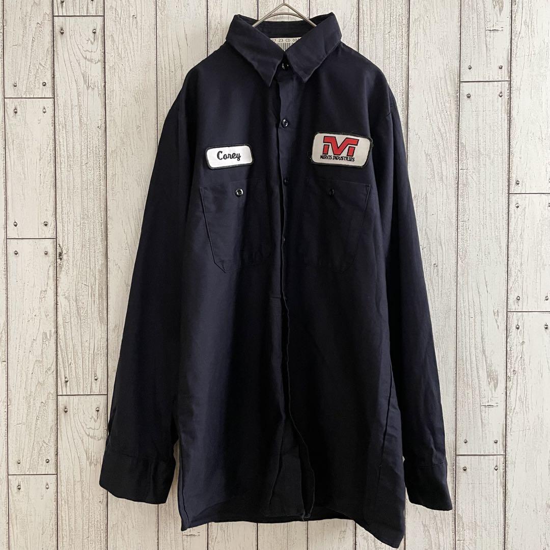UniFirstの長袖ワークシャツです。胸に「MERVIS INDUSTRIES」などのワッペンがついています。M〜Lサイズ相当と思われますが、採寸の方よくご確認お願いいたします。アメカジ、スケーター、ストリート好きな方にオススメです!