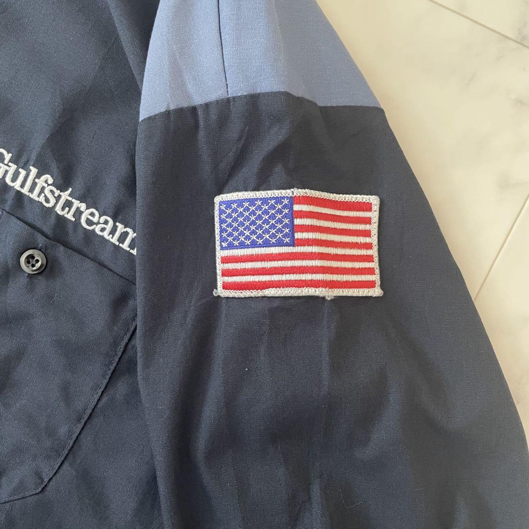 レッドキャップ(RED KAP)の長袖ワークシャツです。腕にはアメリカ国旗星条旗のワッペン、胸には刺繍が施されています。アメカジ、スケーター、ストリート好きな方にオススメです!