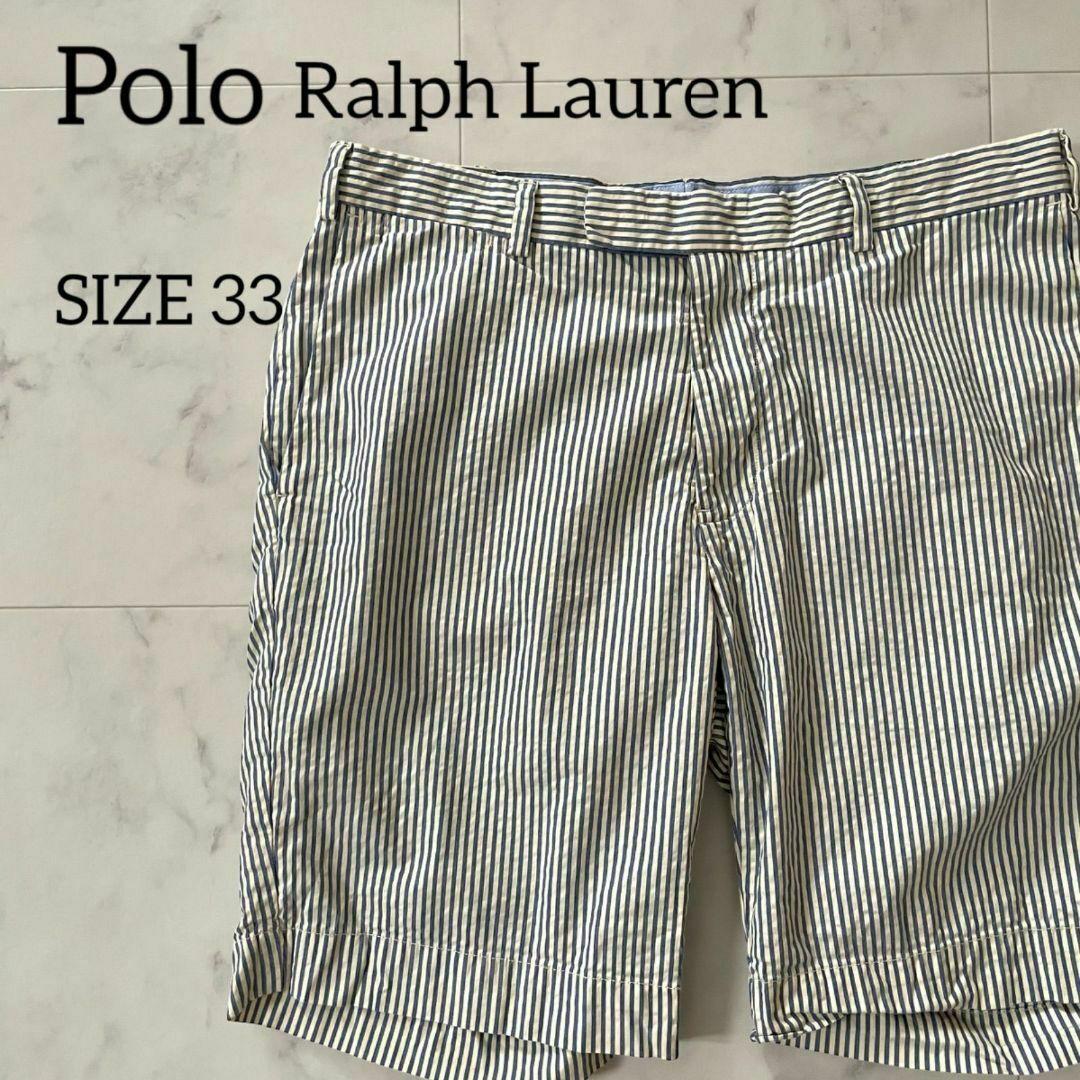 ポロラルフローレン メンズ ハーフパンツ 33サイズ 水色 ストライプ柄