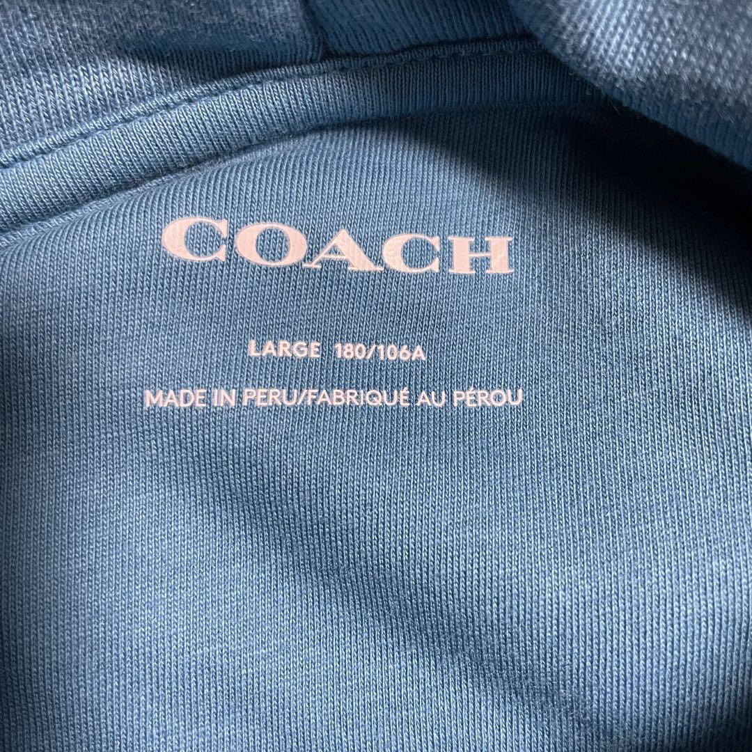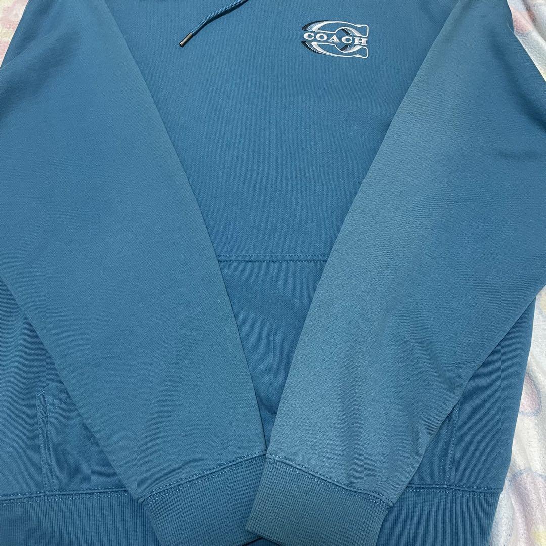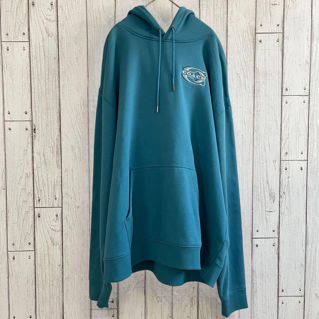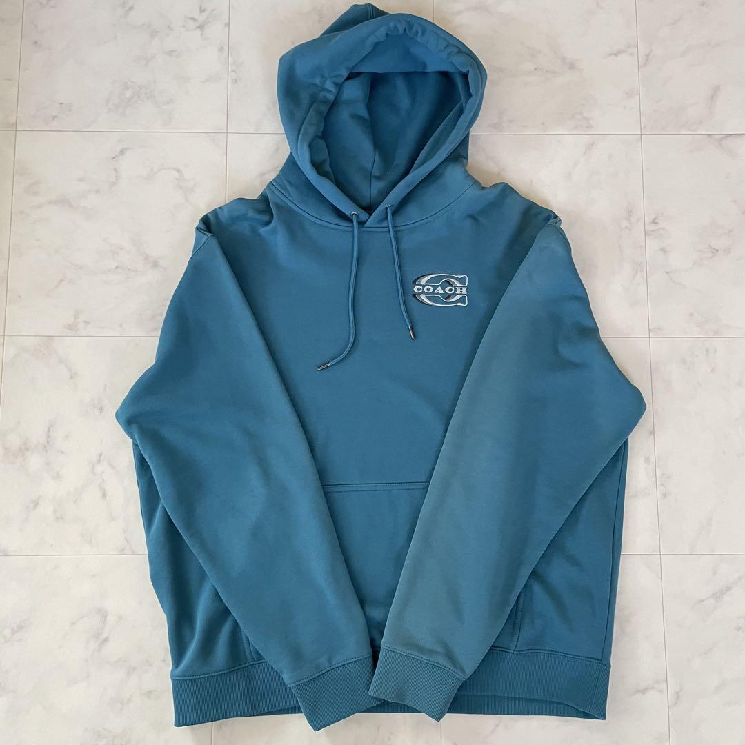 【希少美品】COACH メンズ 長袖パーカー Lサイズ ブルー ターコイズ