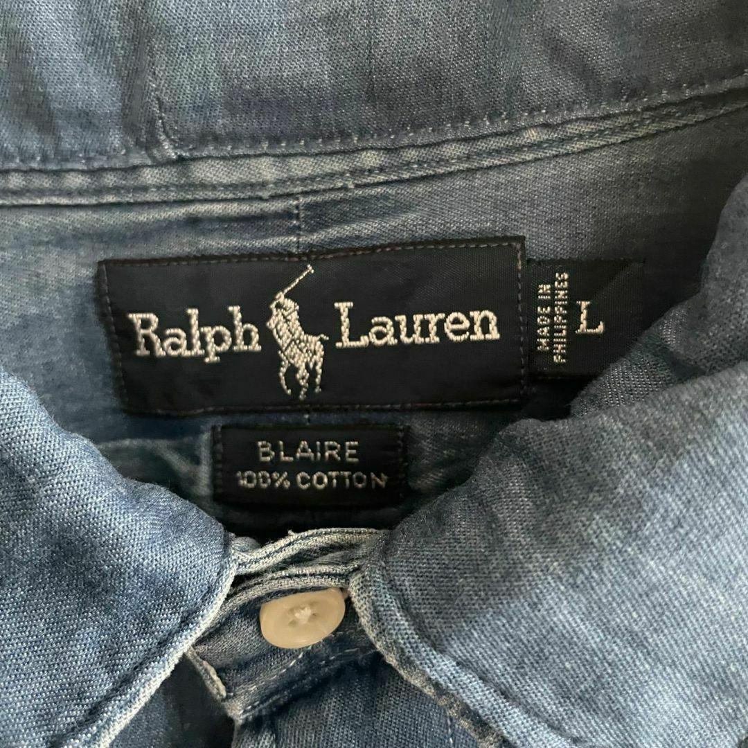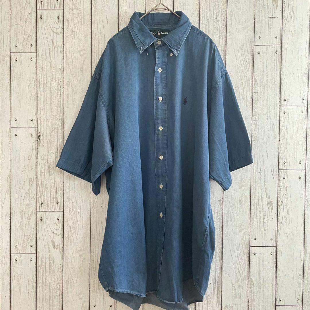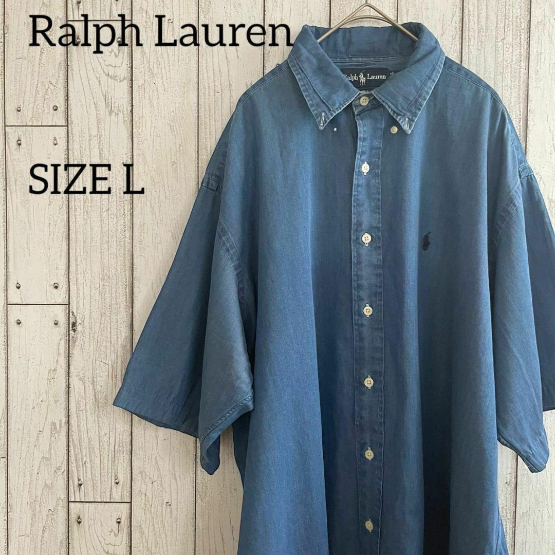 90s ラルフローレン メンズ 半袖 シャツ Lサイズ ブルー