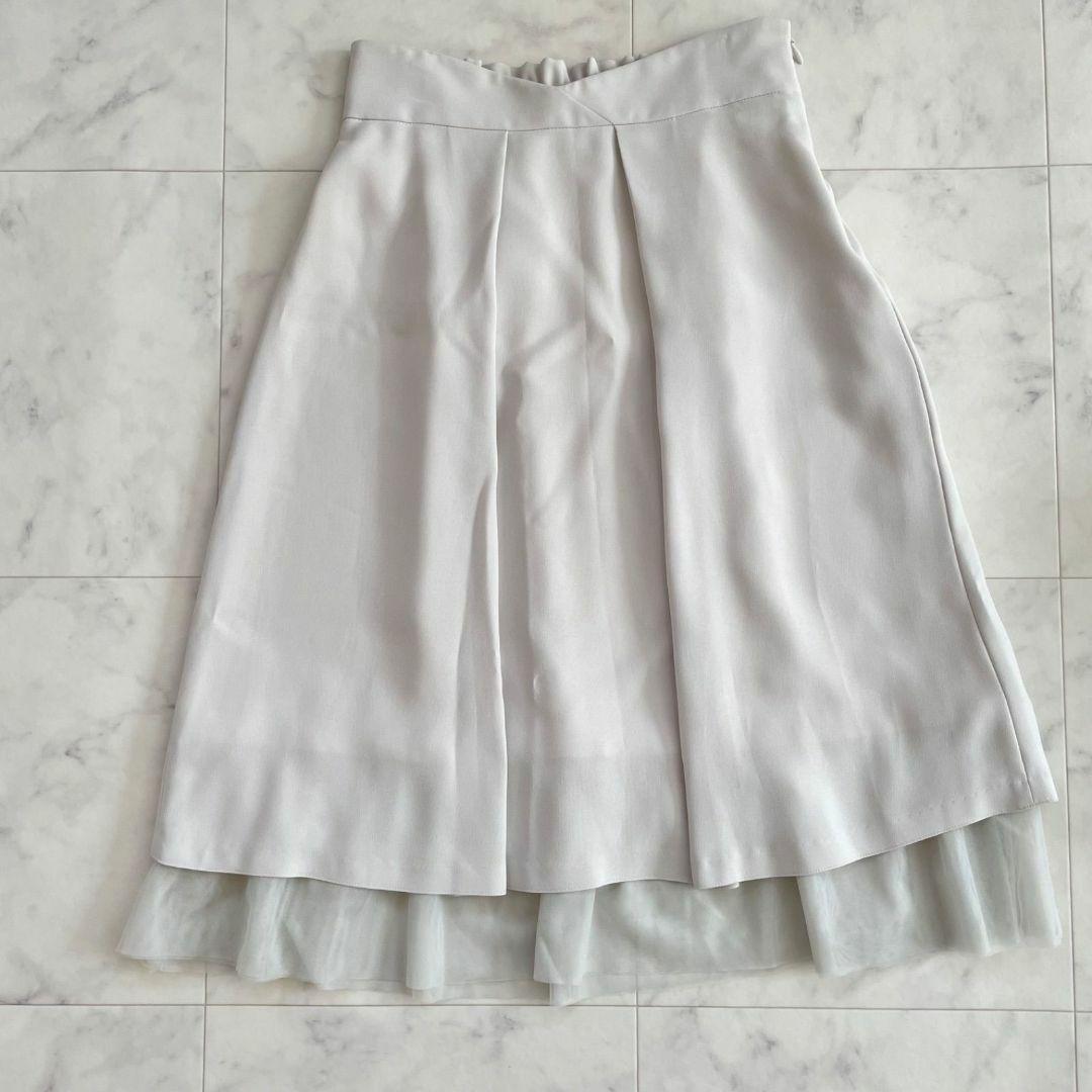 リフレクト(Reflect)の膝丈フレアスカートです。新品未使用のタグ付きになります。薄いグレーの色味と裾のチュールが上品な一枚。