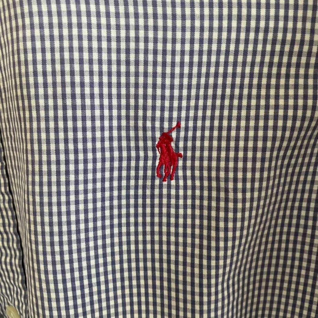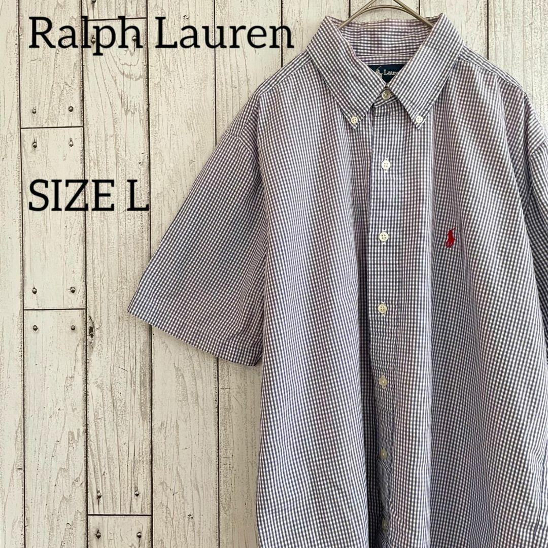 90s ラルフローレン メンズ 半袖 シャツ Lサイズ ブルー系 チェック柄