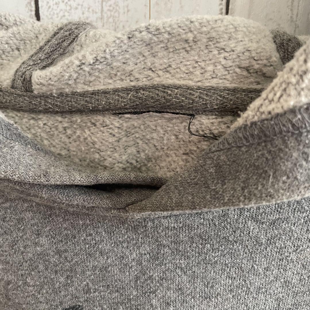 写真では見えづらいですが、胸のプリント下、ポケット上、袖に薄い茶色い汚れがついています。他に目立った傷などはありませんが色あせや毛羽立ちなど古着の使用感はある為、写真の方よくご確認の上お願いいたします。