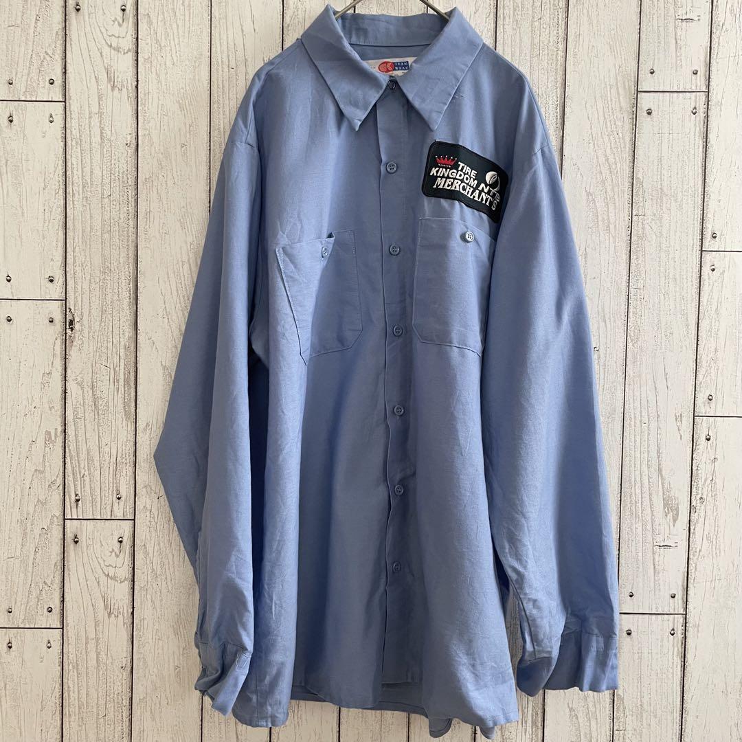 GK メンズ 長袖ワークシャツ Lサイズ ブルー