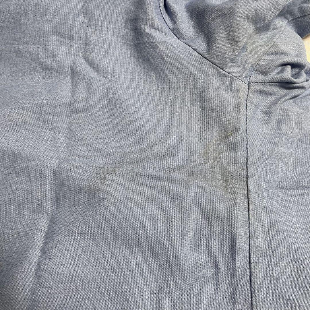 胸ポケット角がほつれてしまっているのと、袖部分白っぽく色あせ、背中、脇部分に黒い汚れがみられます。全体的に糸のほつれ、毛羽立ち、色あせなど古着の使用感もみられる為写真の方をよくご確認の上お願いいたします。
