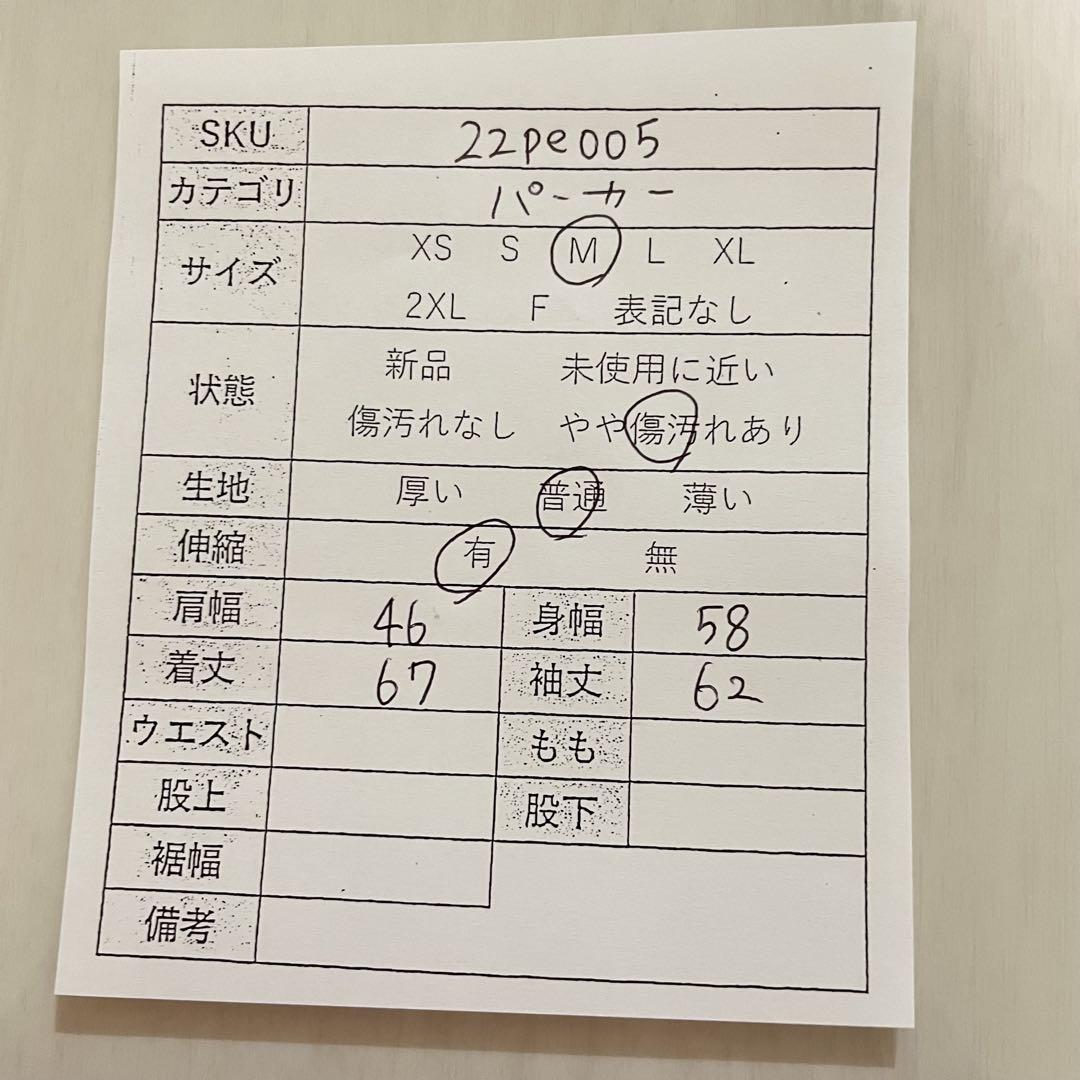 袖部分に白っぽいシミがみられます。他に目立った傷などのダメージは見当たらりませんが、色あせや毛羽立ちなど全体的に古着の使用感はありますので、写真の方をよくご確認の上お願いいたします。