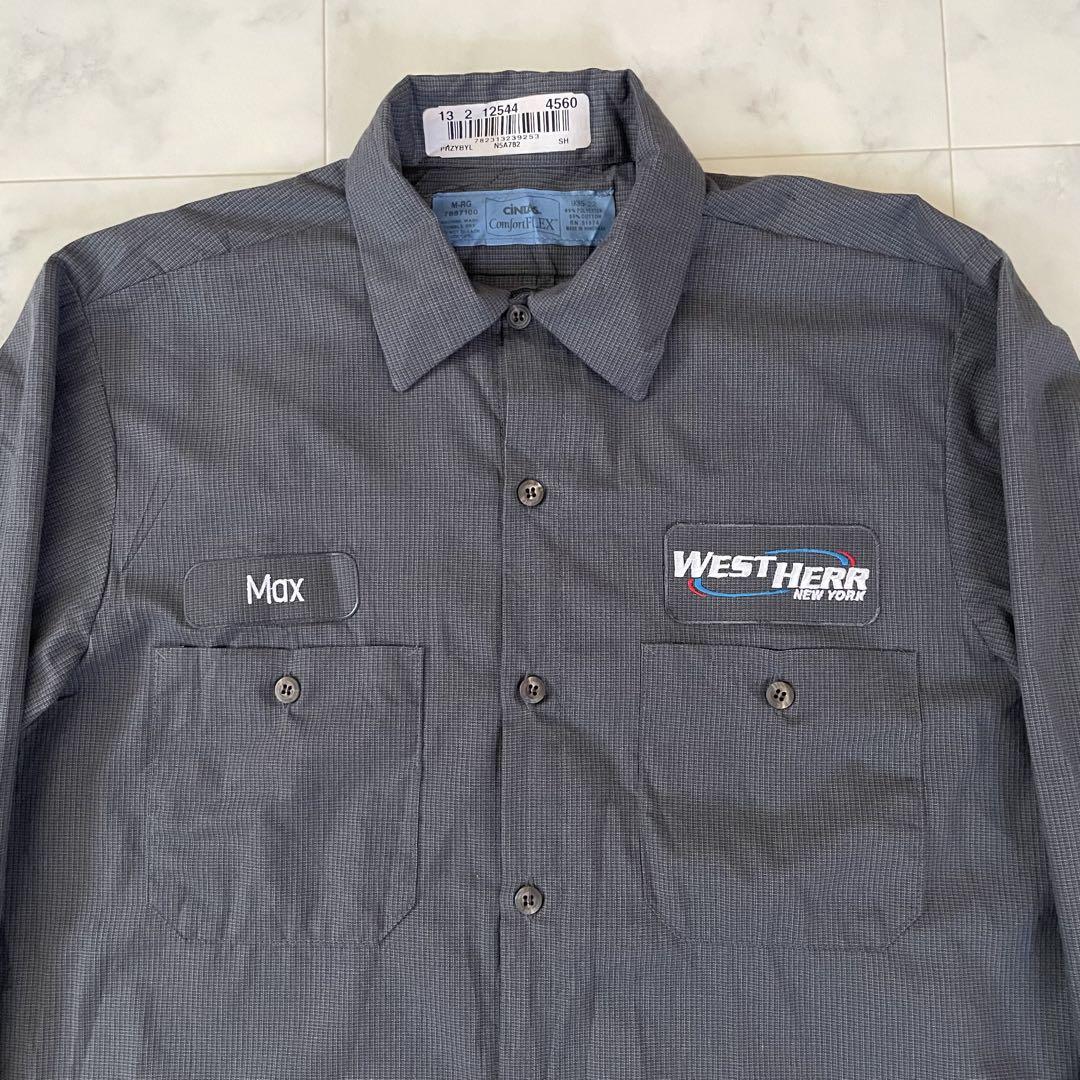 CINTAS(シンタス)の長袖ワークシャツです。胸に「WEST HERR」「Max」のワッペンがついています。アメカジ、スケーター、ストリート好きな方にオススメです!