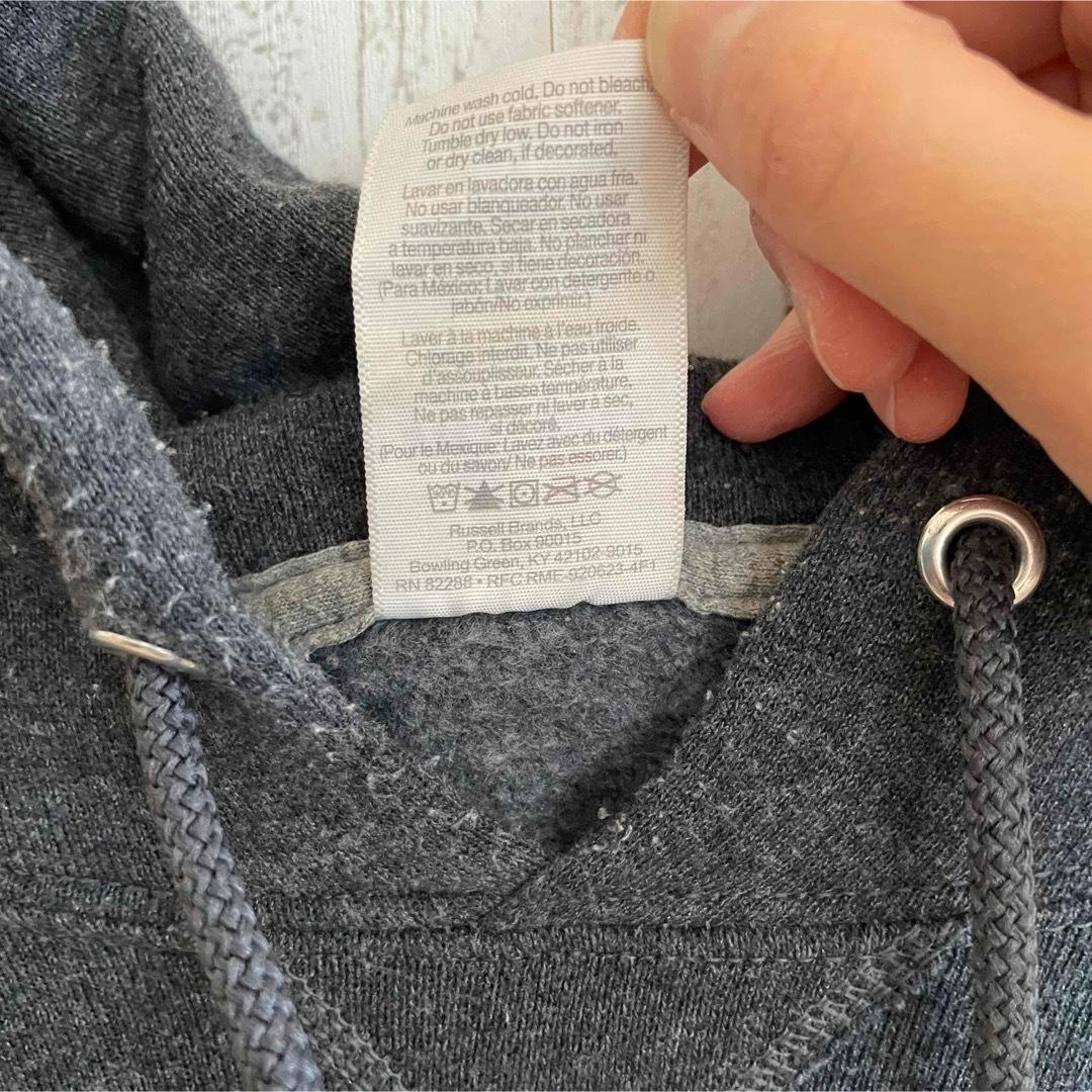 ラッセル(RUSSELL)の長袖パーカーです。胸のプリントがアクセントになる一枚。シンプルな色味で幅広いコーディネートに着回しできまふ。