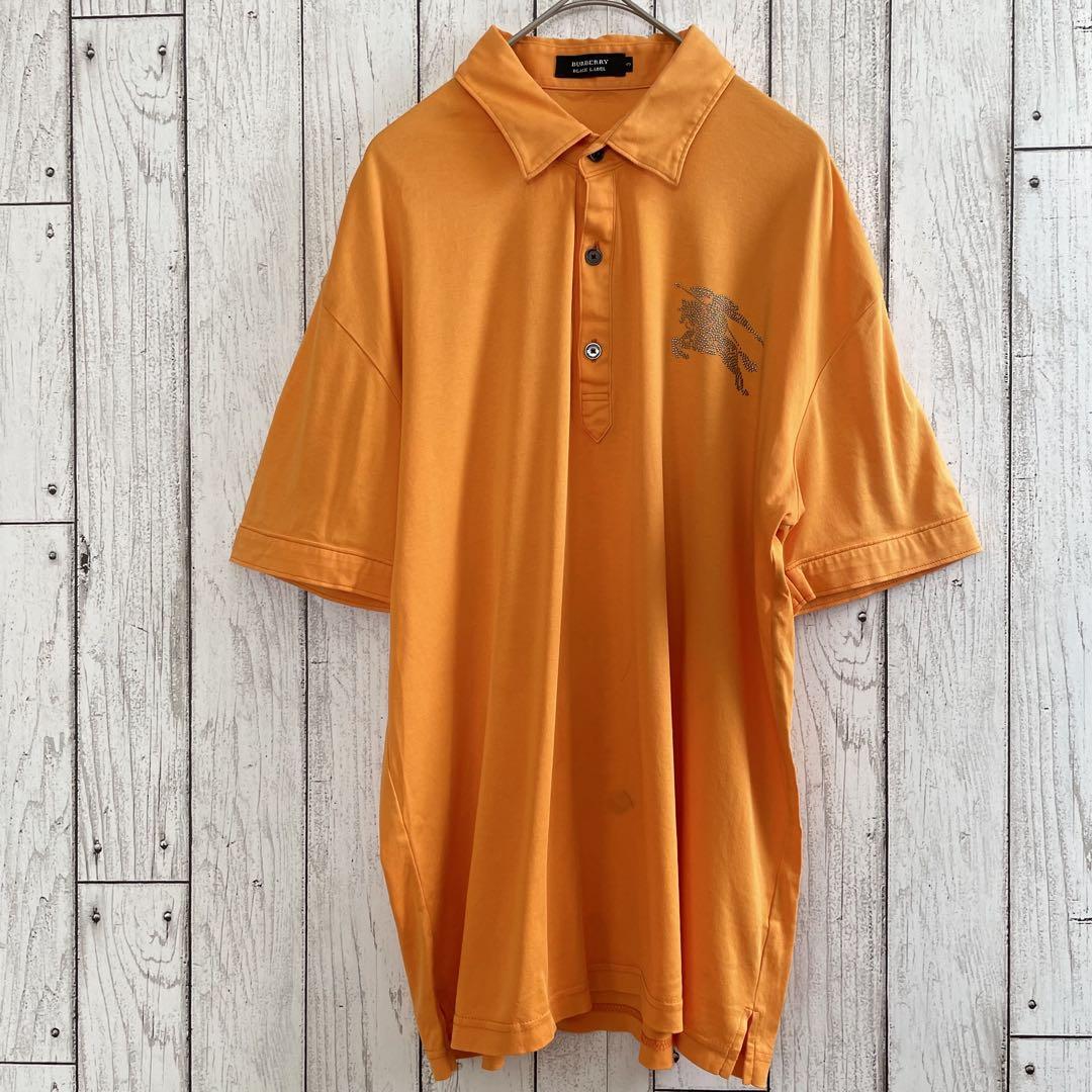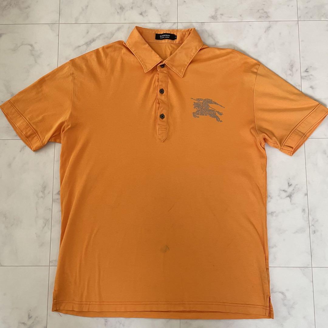 バーバリー(BURBERRY) BLACK LABEL(ブラックレーベル)の半袖ポロシャツです。オレンジ色が鮮やかのロゴが特徴的な一枚。