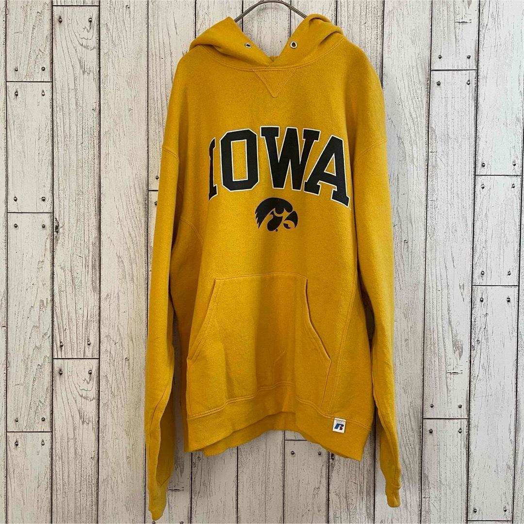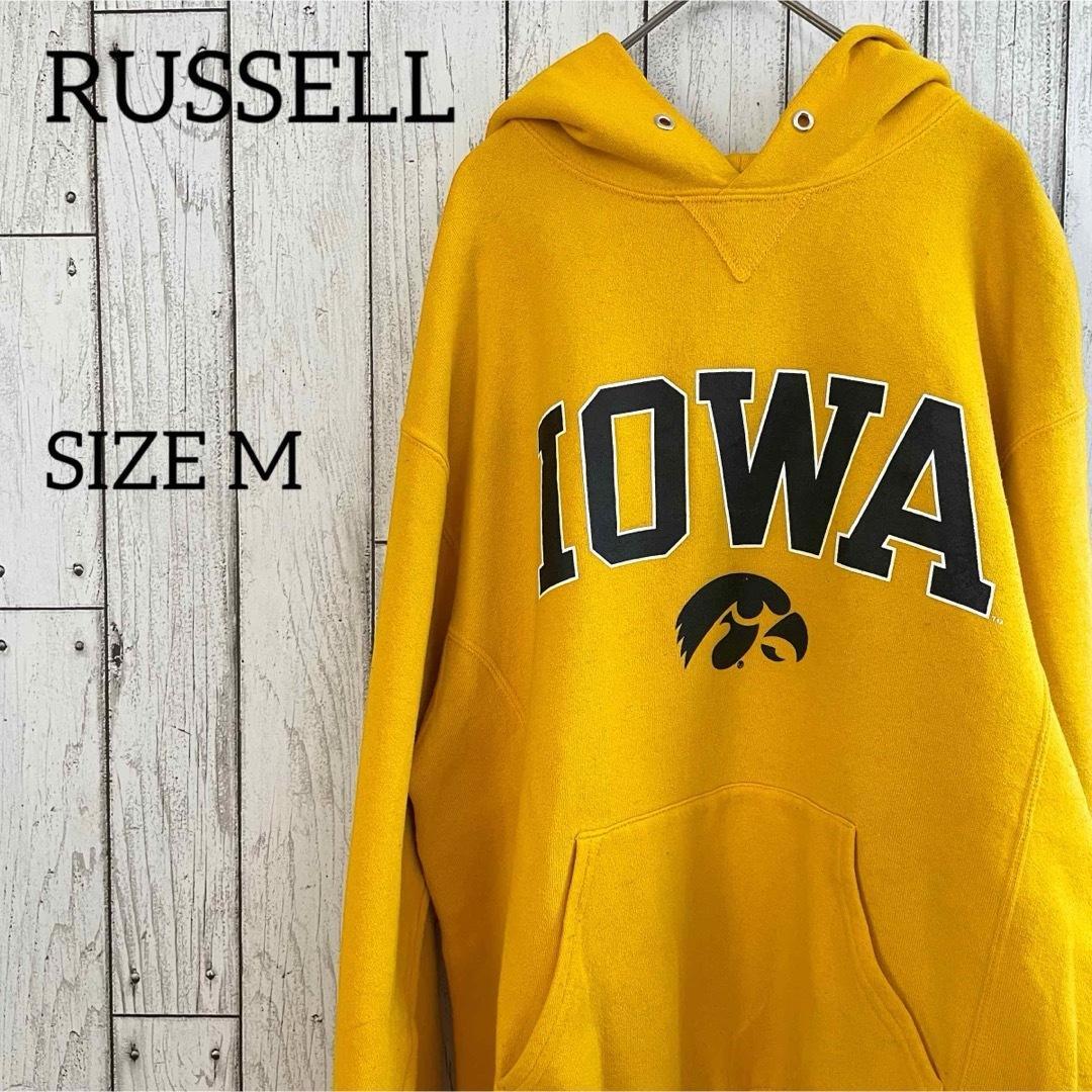 【美品】RUSSELL ラッセル 長袖パーカー Mサイズ イエロー アイオワ