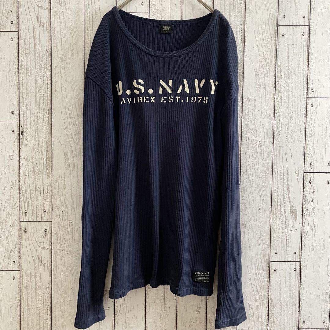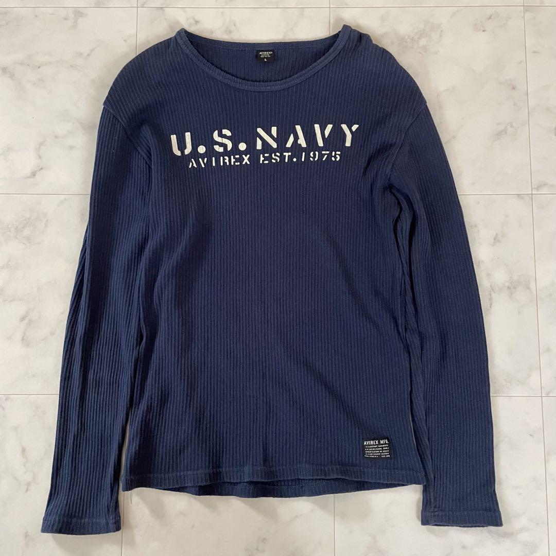 【美品】AVIREX 長袖ニット Lサイズ ネイビー