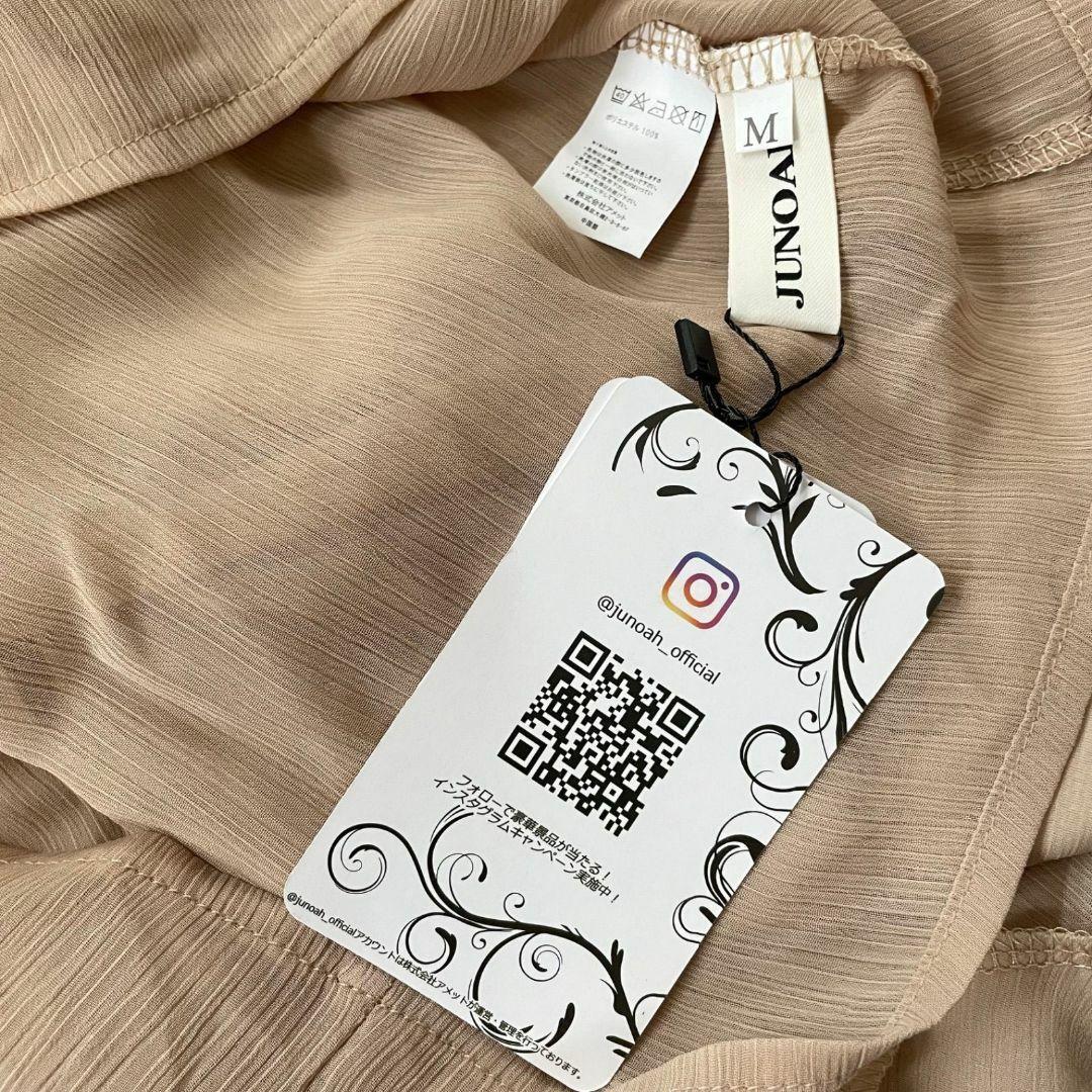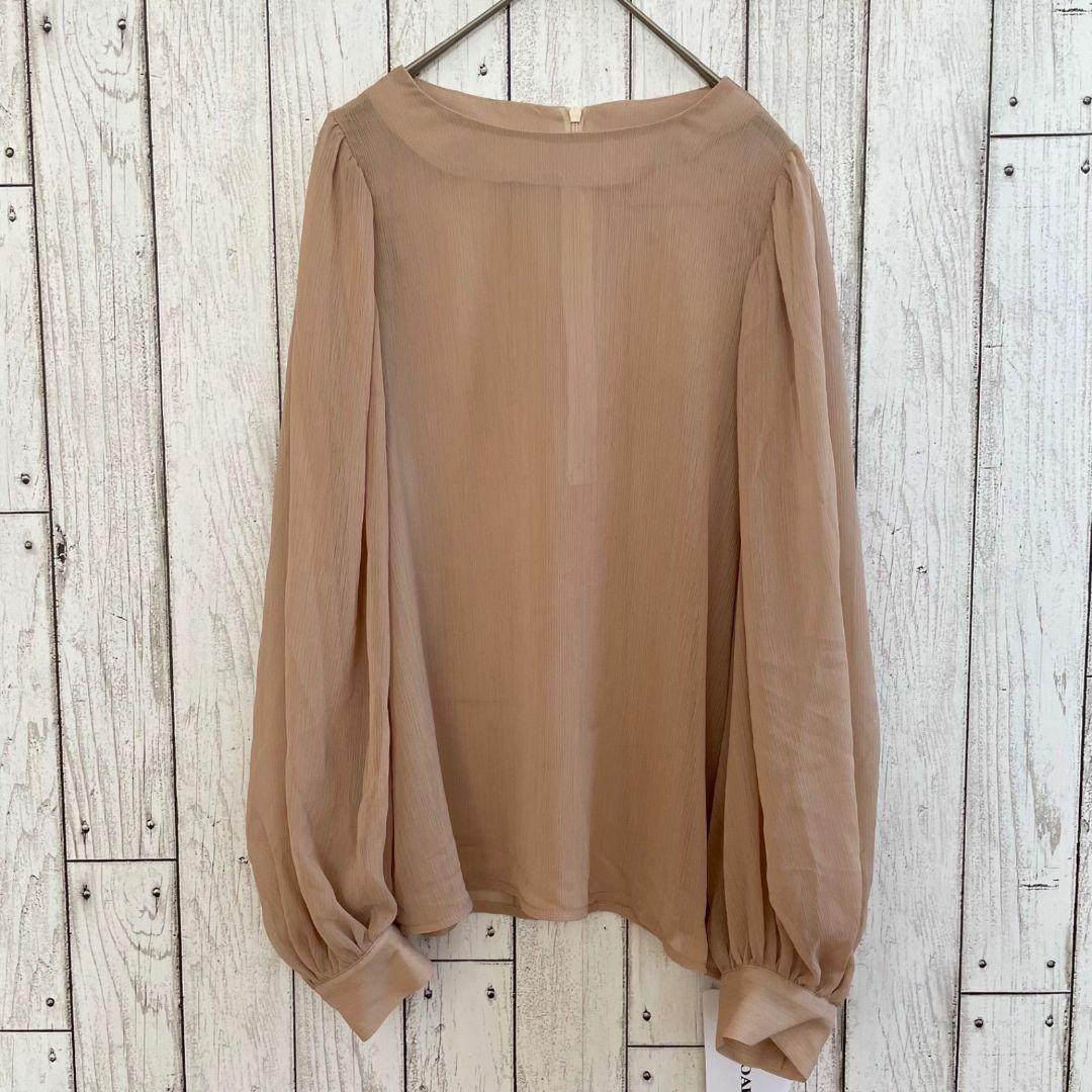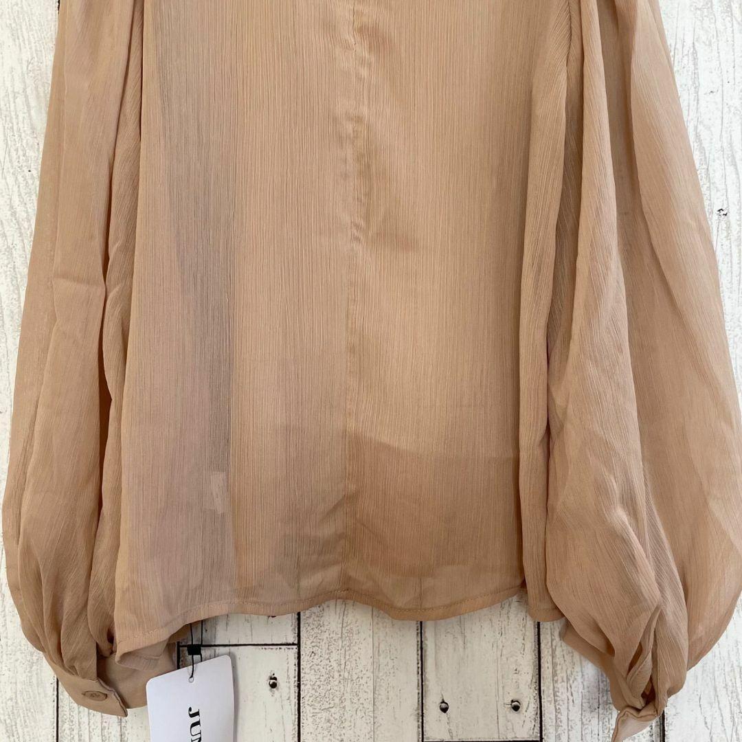 ジュノア(JUNOAH)の長袖ブラウスです。新品未使用のタグ付きになります。シアー素材を生かした、女性らしく上品なデザインに作り上げた一枚。程よくボリューム感のあるバルーンスリーブがかわいく二の腕をカバーしてくれます。