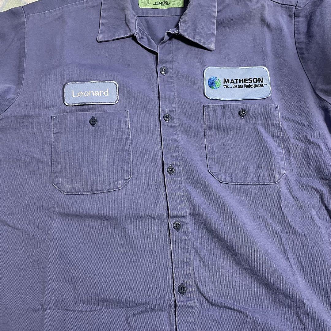 CINTAS(シンタス)の半袖ワークシャツです。胸に「Leonard 」「MATHESON」のワッペンがついています。アメカジ、スケーター、ストリート好きな方にオススメです!