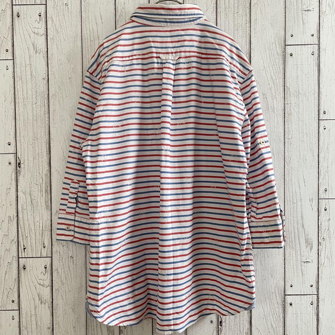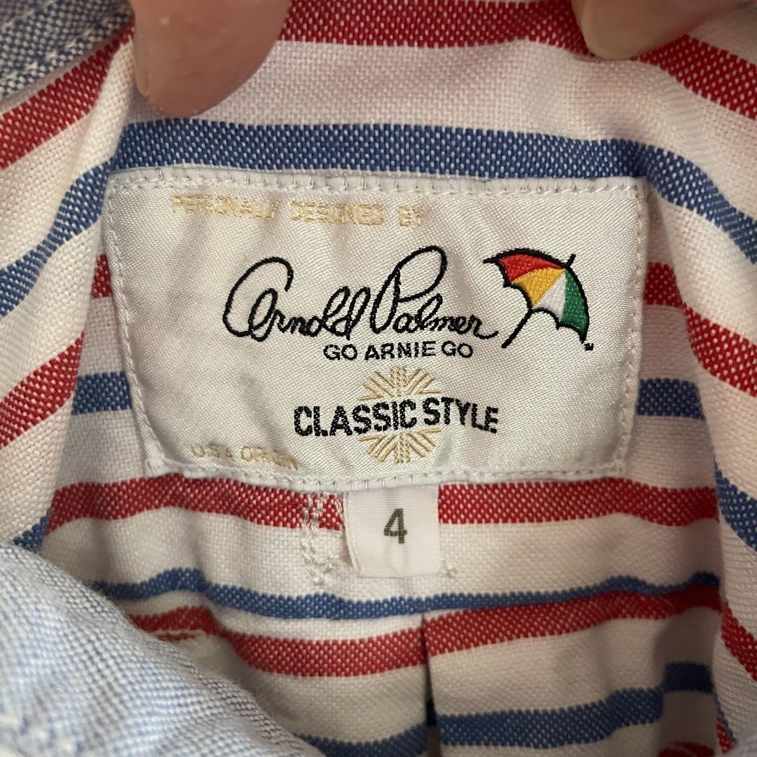 【美品】Arnold Palmer 七分袖シャツ 4サイズ ボーダー 赤青白