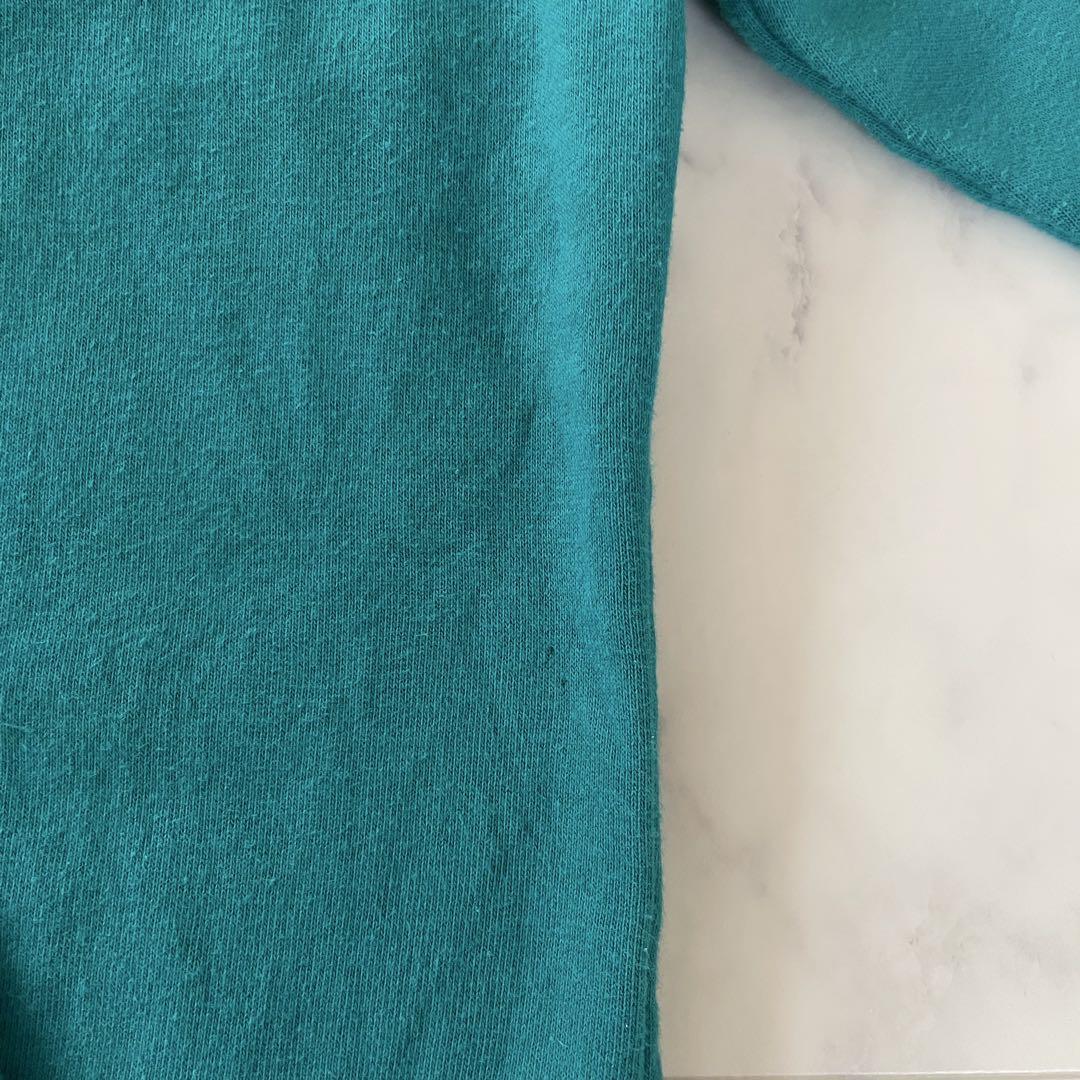 胸のロゴ部分に若干の汚れ、前の横側、裾に小さな汚れがみられます。他に目立った傷などのダメージは見当たらりませんが、色あせや毛羽立ち、ほつれなど全体的に古着の使用感はありますので、写真の方をよくご確認の上お願いいたします。