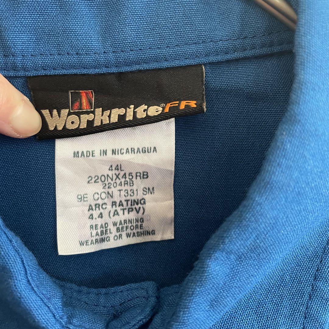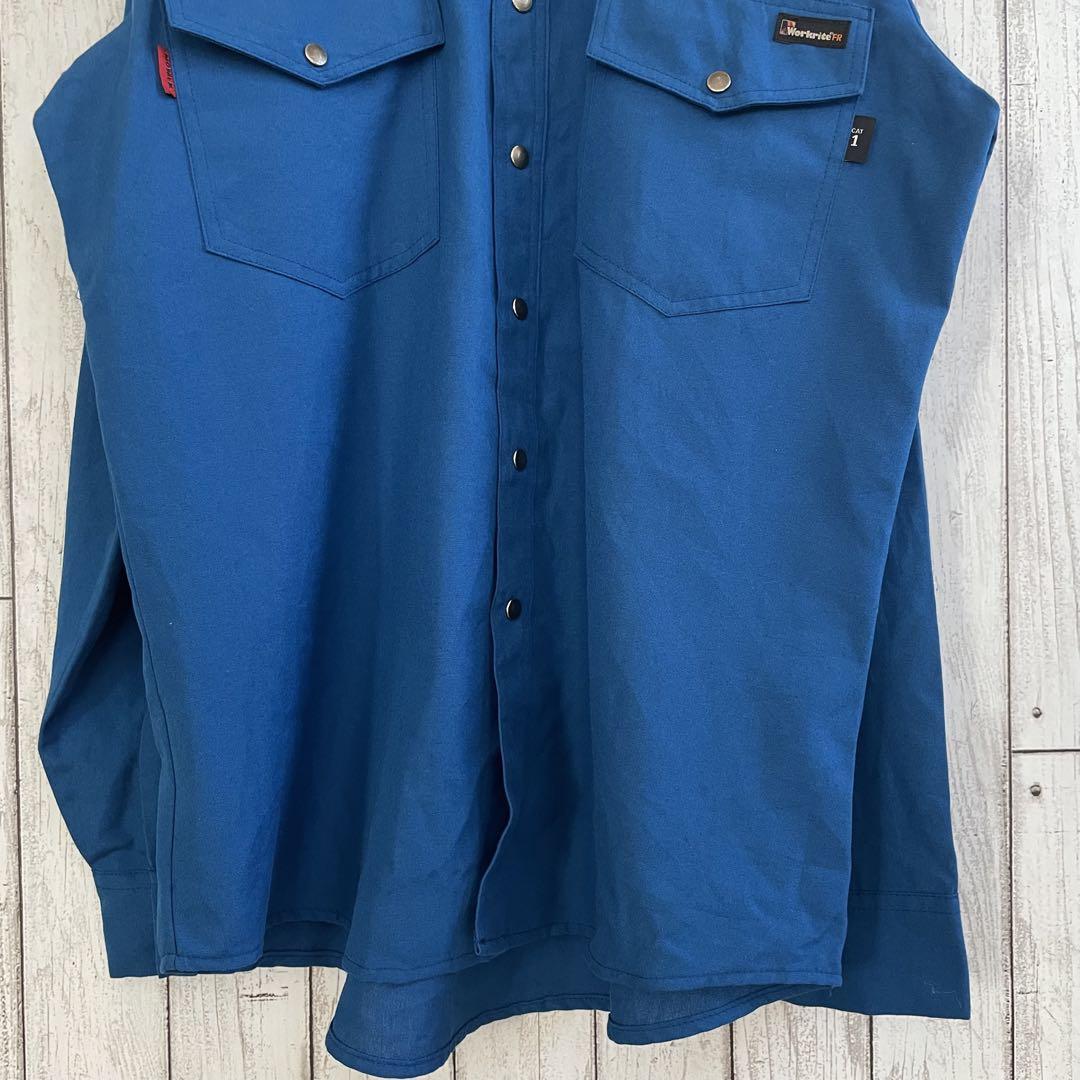 【美品】WorkriteFRメンズ 長袖ワークシャツ ブルー