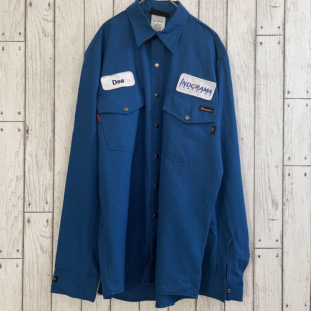 Workriteの長袖ワークシャツです。胸に「INDORAMA」「Dee」のワッペンがついています。Lサイズ相当と思われますが、採寸の方よくご確認お願いいたします。アメカジ、スケーター、ストリート好きな方にオススメです!