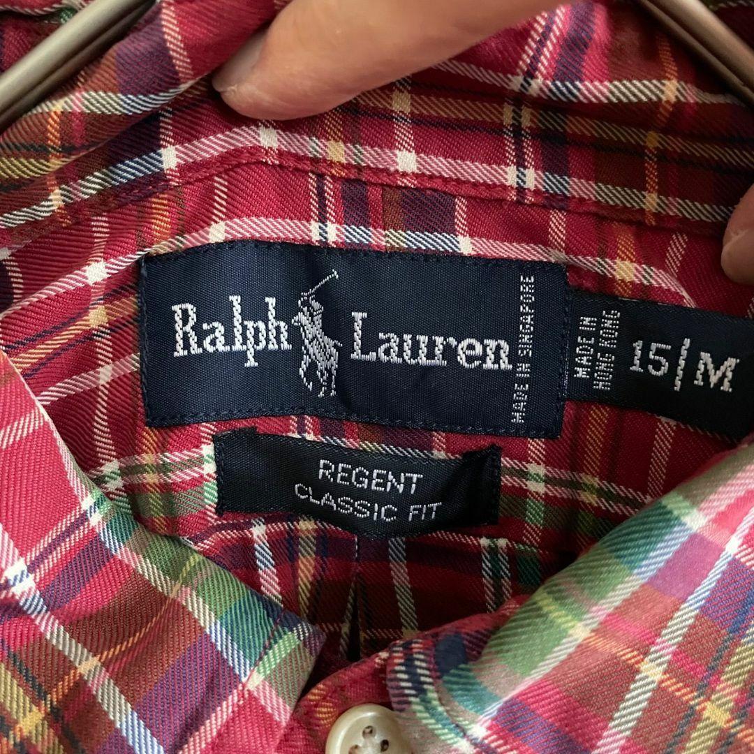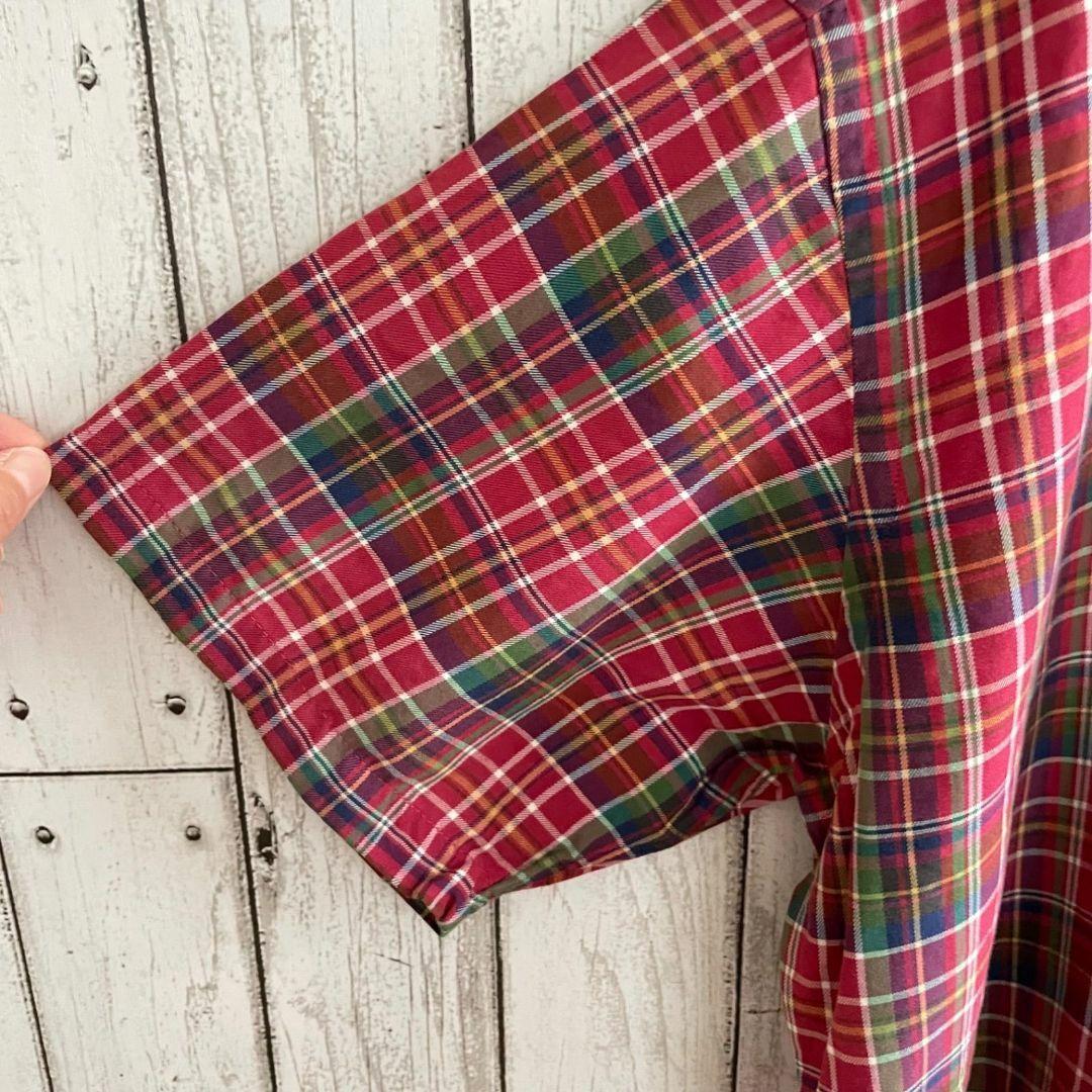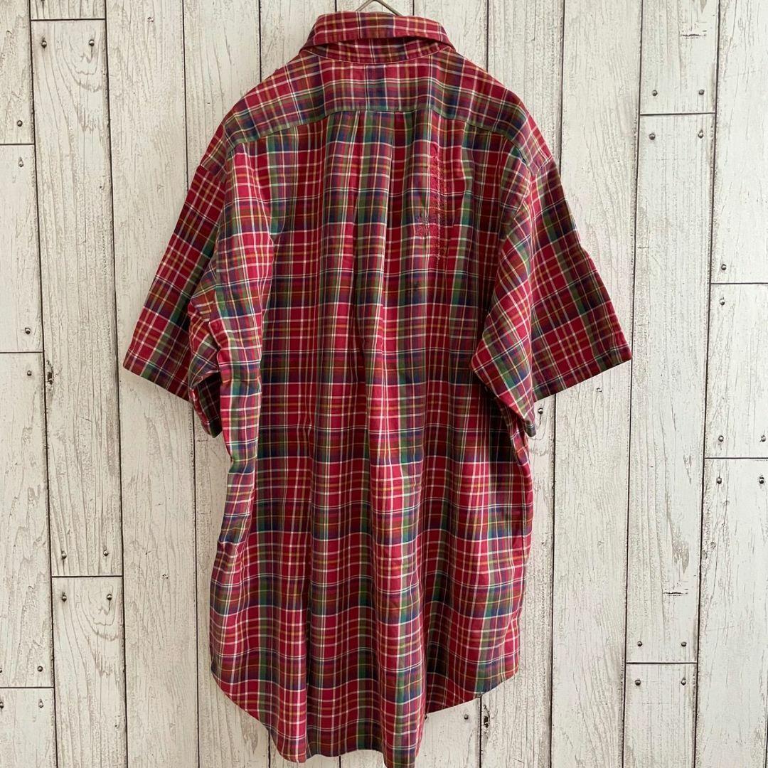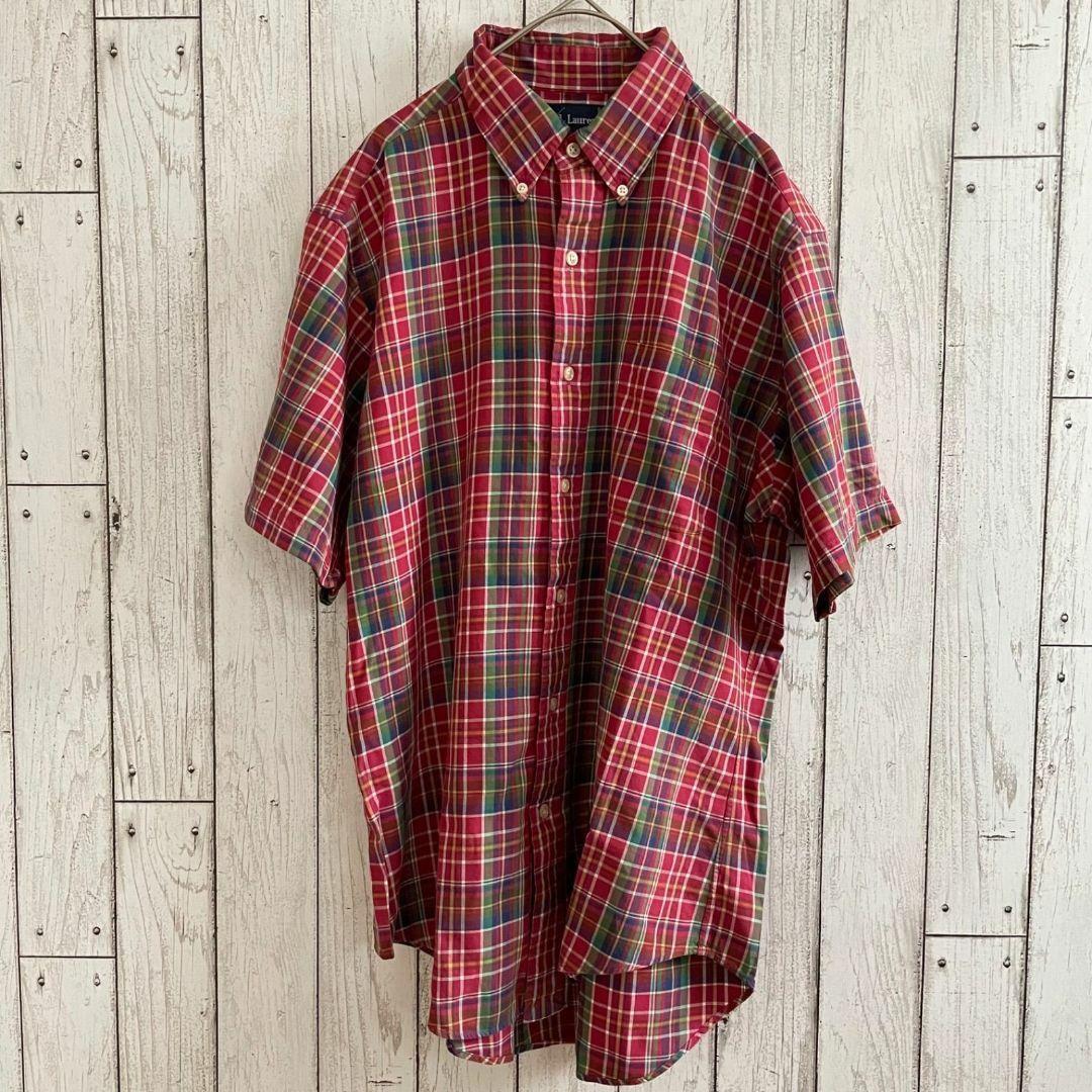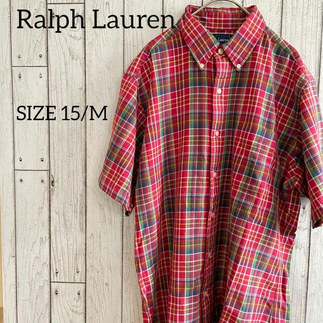 90s ラルフローレン メンズ 半袖 シャツ Mサイズ レッド チェック柄