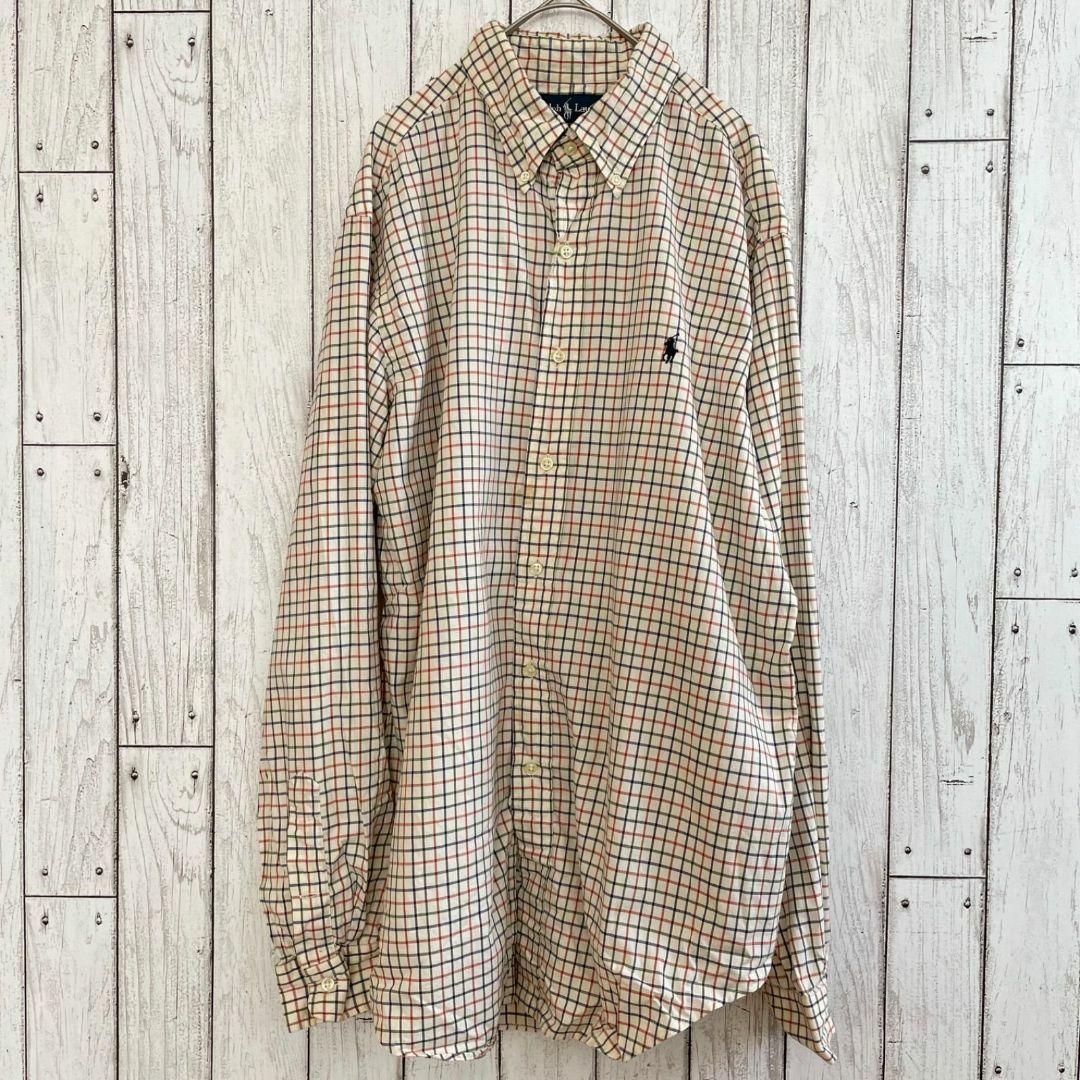 90s ラルフローレン メンズ 長袖シャツ イエロー系 ポニー刺繍 チェック柄
