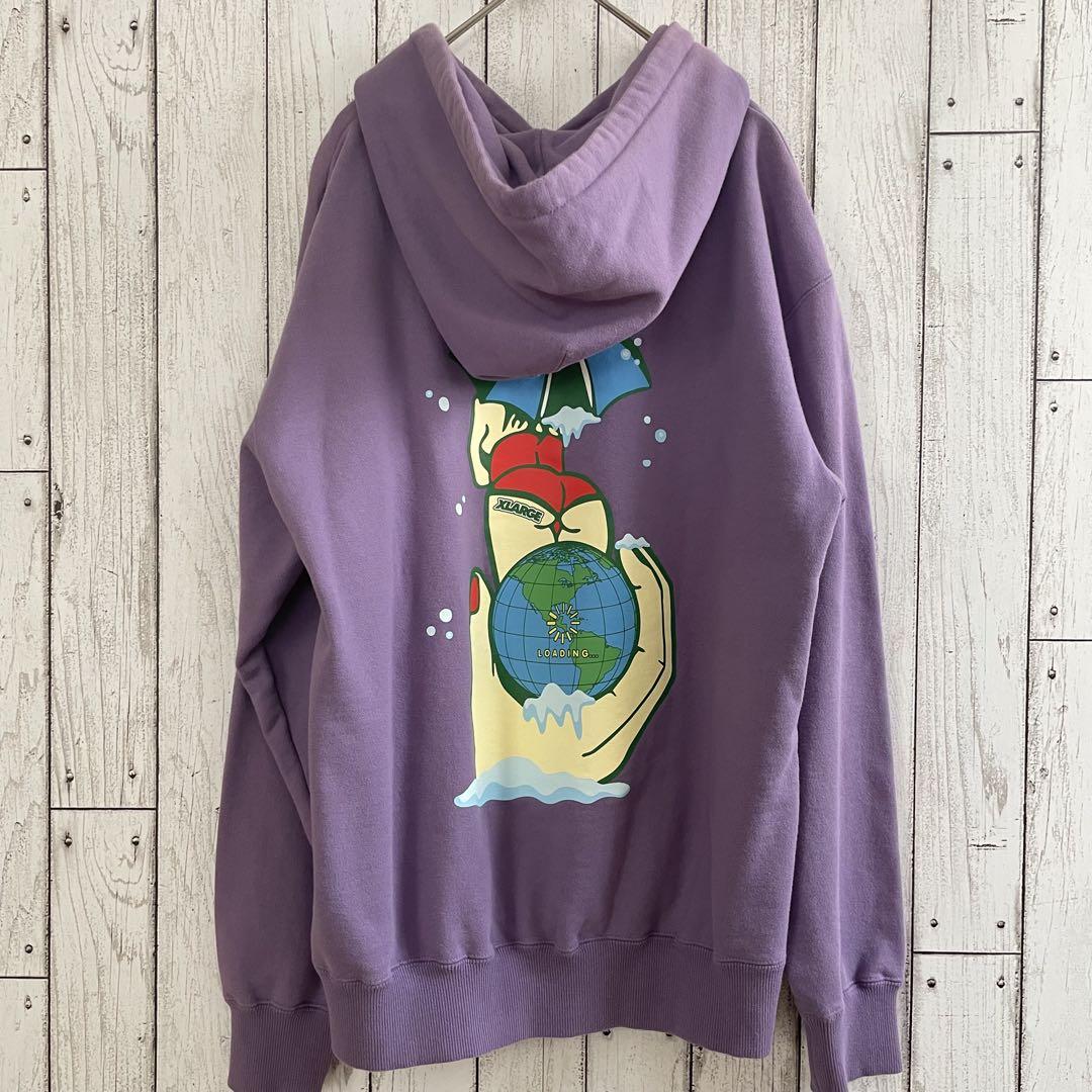 【美品】XLARGE フード付き長袖パーカー Sサイズ パープル