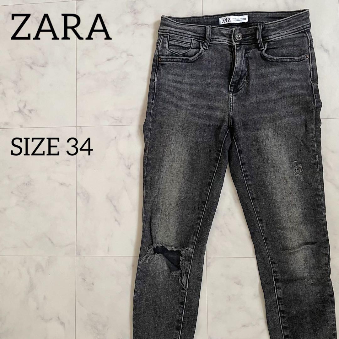 【美品】ZARA ザラ ダメージデニムパンツ メンズ 34サイズ ブラック