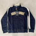 Abercrombie & Fitch(アバクロンビー&フィッチ)のジップアップスウェットです。ネイビー生地にフロントの大きなロゴ刺繍とラインがアクセントとなったオシャレなデザインです。採寸の方をよくご確認ください。