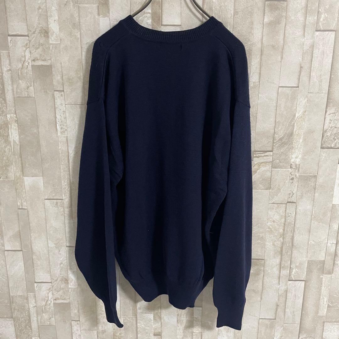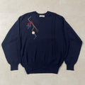 BURBERRY(バーバリー)の長袖Vネックセーターです。こちらはBURBERRYSの製品で、90年代モデルのため現在は新品での入手が困難となっています。ネイビー生地にゴルフモチーフの刺繍とケーブルニットが施された高級感溢れるデザイン。普段着はもちろん、ゴルフウェアとしての着こなしもおすすめです。採寸の方をよくご確認ください。