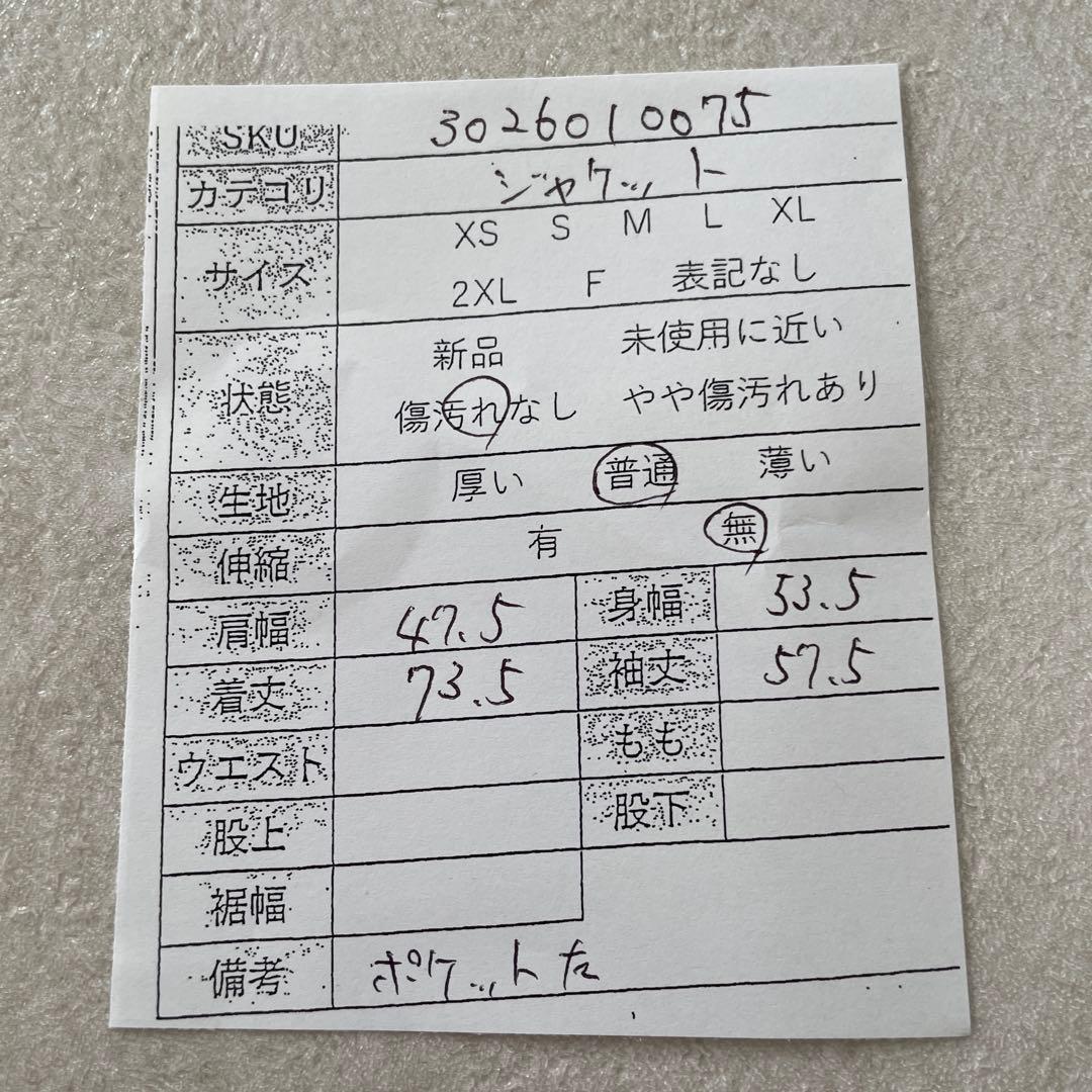 ※経年劣化によりボタンに傷、色落ちがあり(写真7枚目参照)、両手首、両腕付近(7.8枚目)と前面左ポケットと脇付近の裏地(9枚目)にシミ、汚れがあります。また、裏地全体に黄ばみがあります(10枚目)。その他古着の使用感もありますので、写真の方をよくご確認ください。