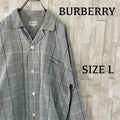 90s BURBERRY 長袖シャツ チェック柄 サイズL グレー