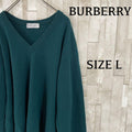 90s BURBERRYS 長袖ニットセーター Vネック ラムウール100%