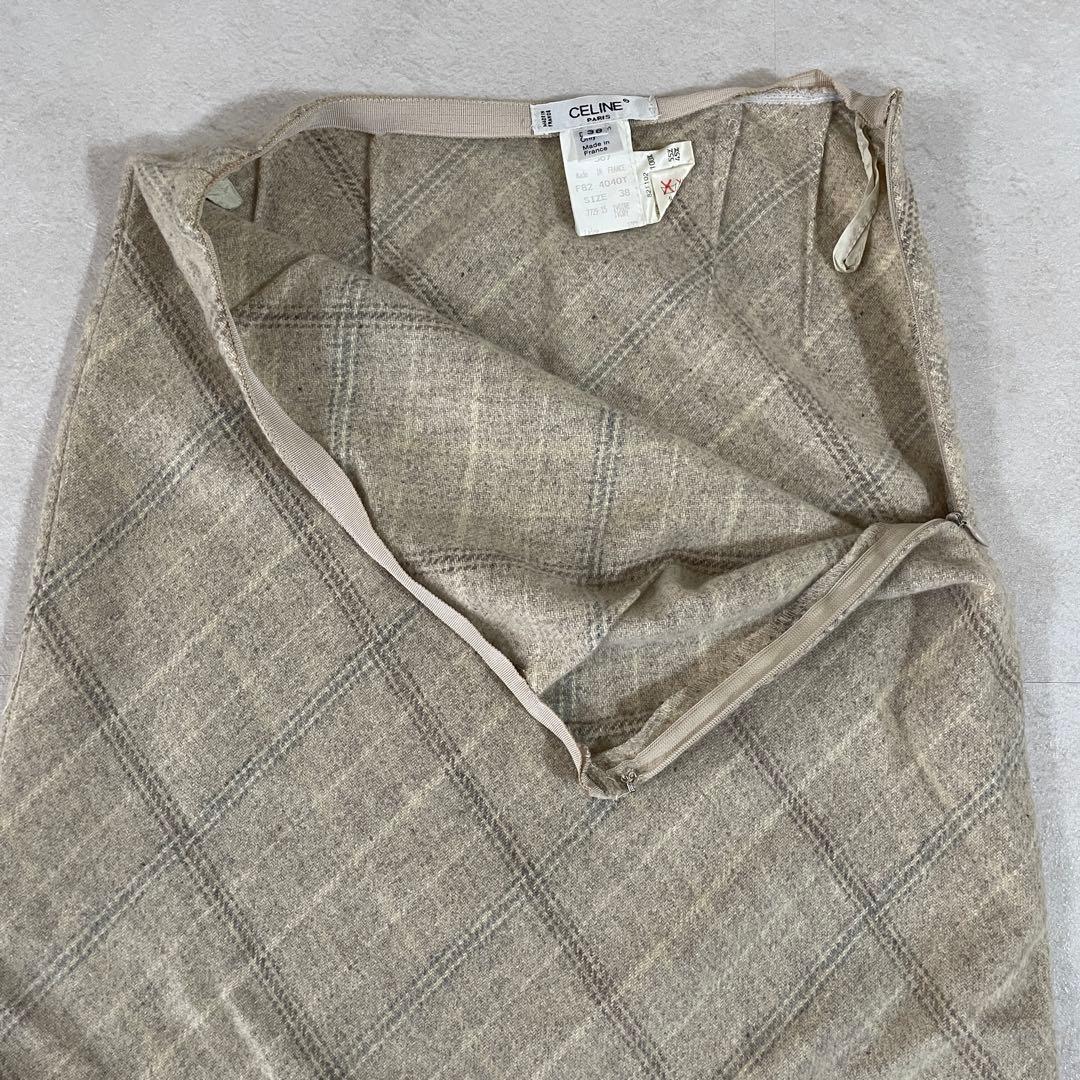 【美品】CELINE ロングスカート フランス製 サイズ38 ベージュ チェック