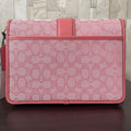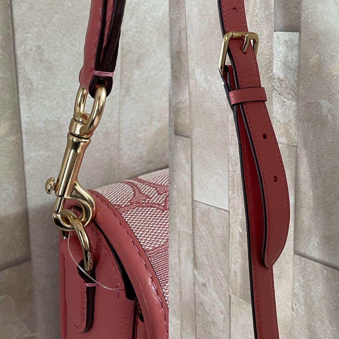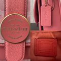 COACH(コーチ)の【ロニー】ショルダーバッグです。コーラルピンクのシグネチャー総柄キャンバス×レザーにロゴプレートがオシャレなショルダーバッグです。マグネット式フラップ開閉で長財布も入り、豊富なポケット付きで収納力抜群。斜め掛けできるショルダーは取り外し、長さ調節可能。通勤通学から普段使いとマルチに大活躍です!
