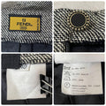 FENDI(フェンディ)のひざ丈スカートです。グレー×ブラック生地に総柄とキュートなボタンがオシャレなデザイン。サイズはM相当と思われますが、採寸の方をよくご確認ください。