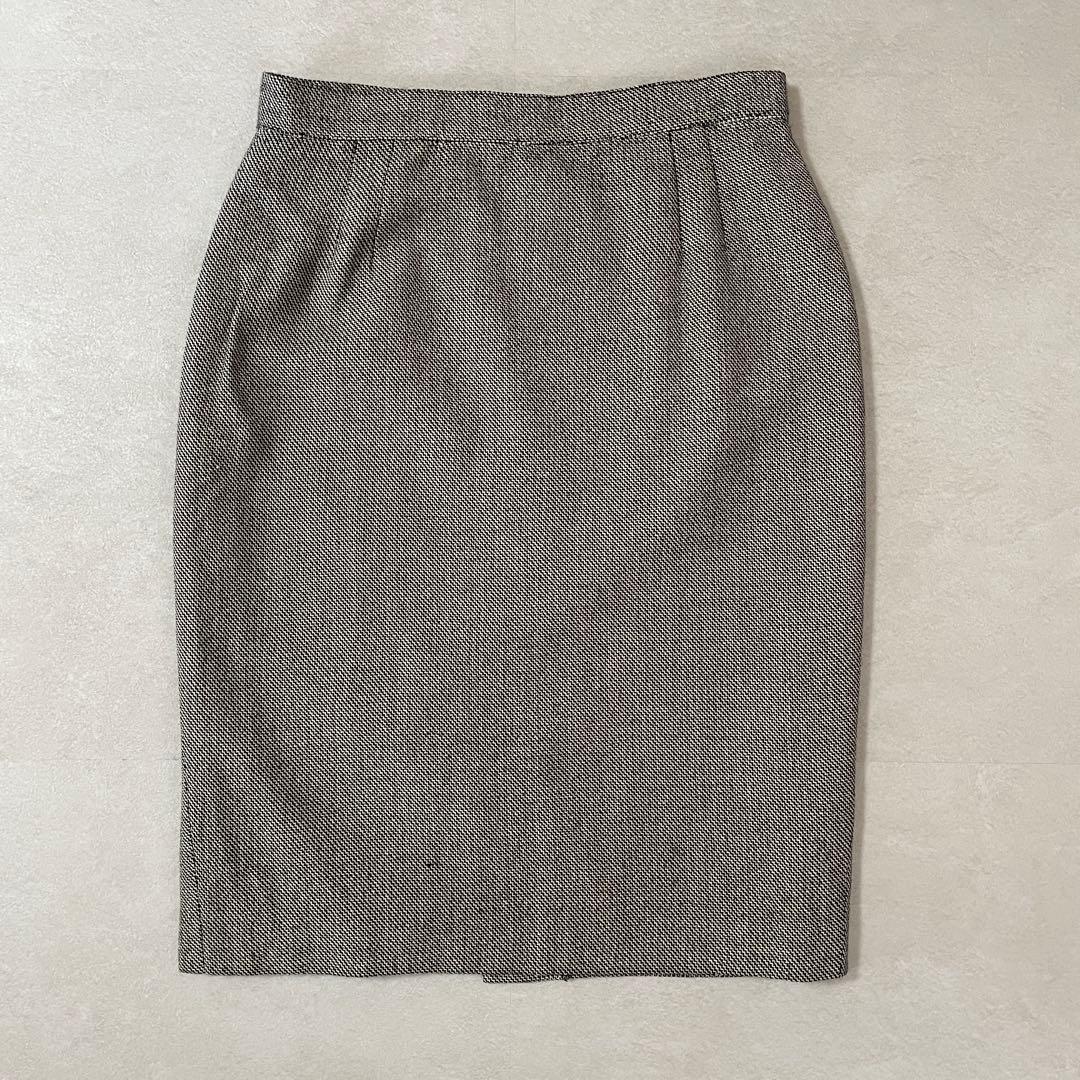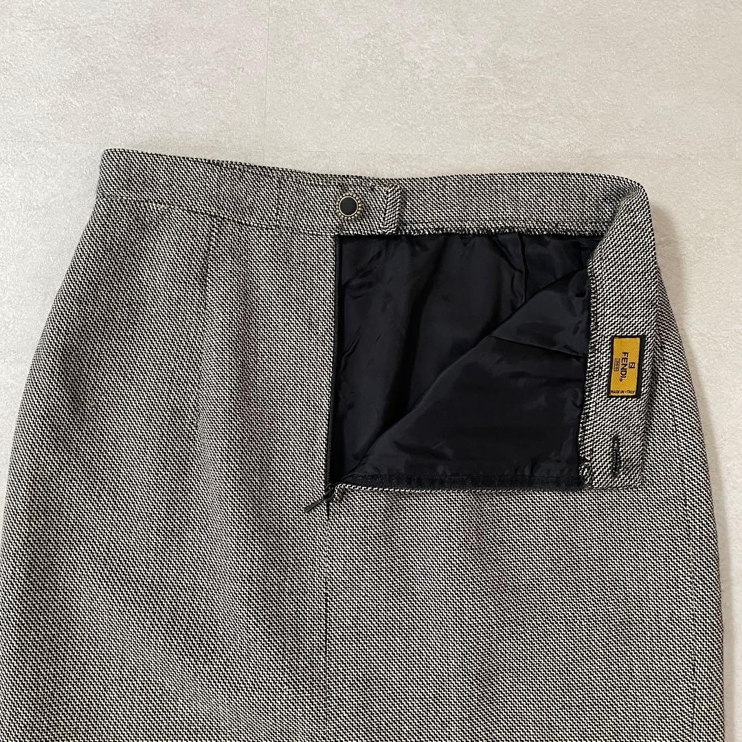 古着 FENDI ひざ丈スカート イタリア製 総柄 グレー×ブラック サイズ40