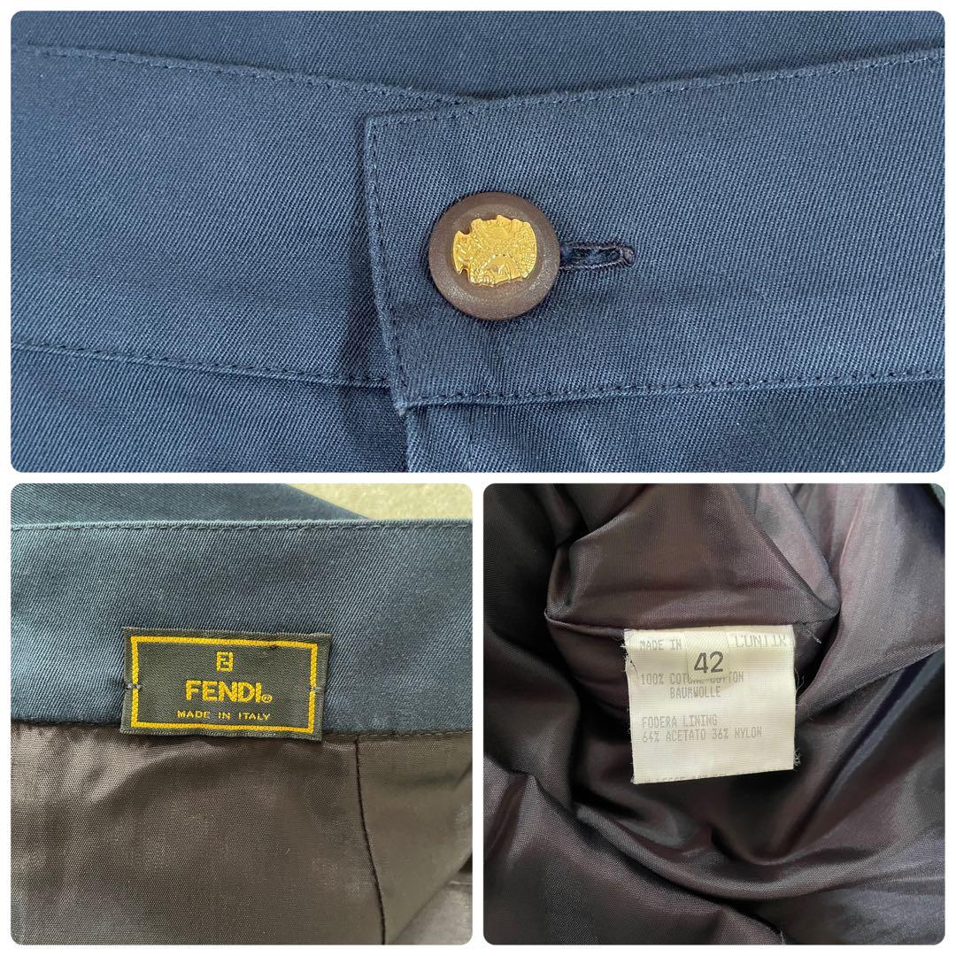 【美品】 FENDI 膝丈タイトスカート イタリア製 サイズ42 ネイビー