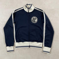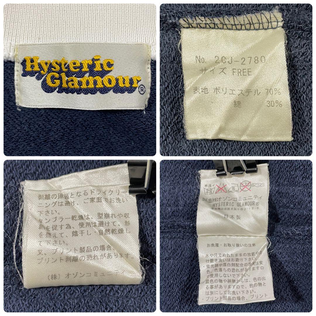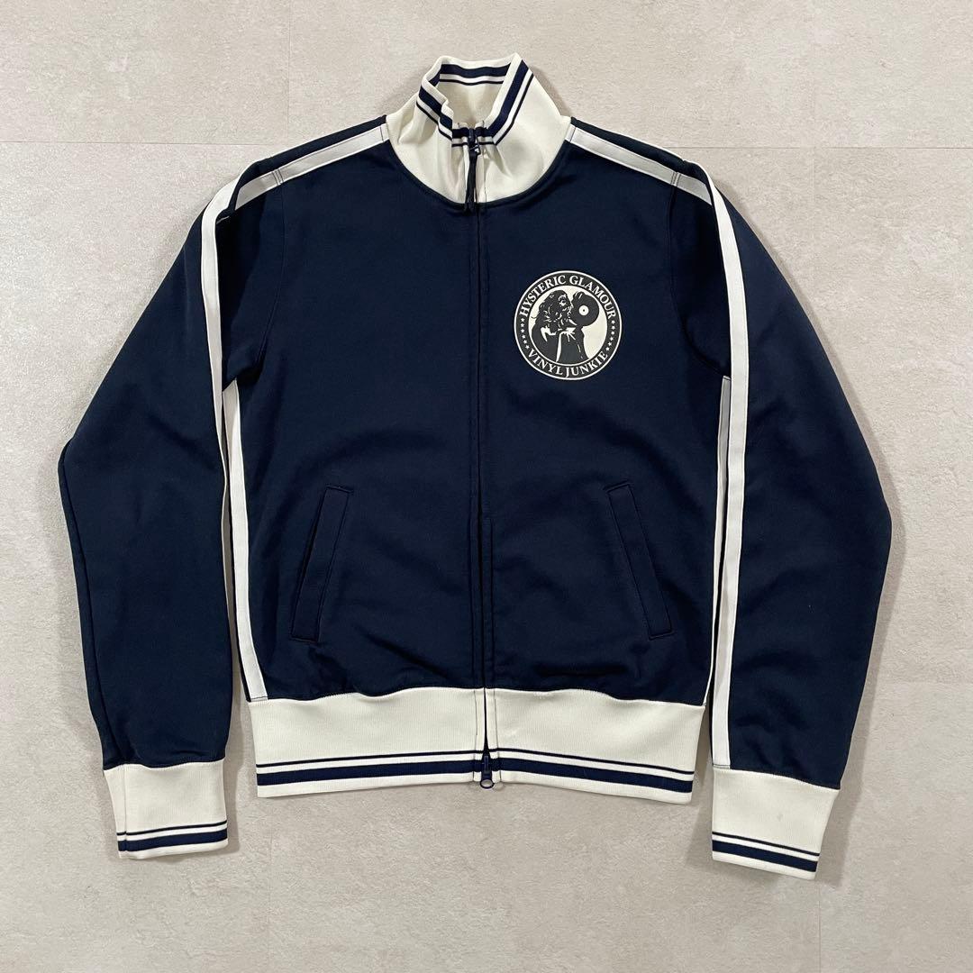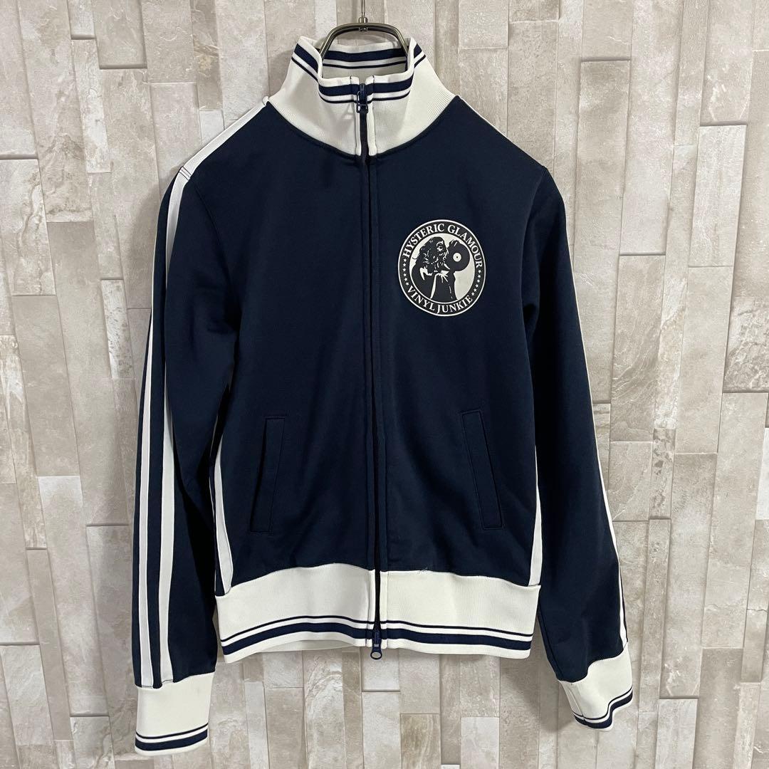 HYSTERIC GLAMOUR(ヒステリックグラマー)のトラックジャケット/パンツの上下セットです。ネイビー生地にロゴプリント、バックプリント、ラインが施されたオシャレなデザイン。FREEサイズとなっているため、採寸の方をよくご確認ください。