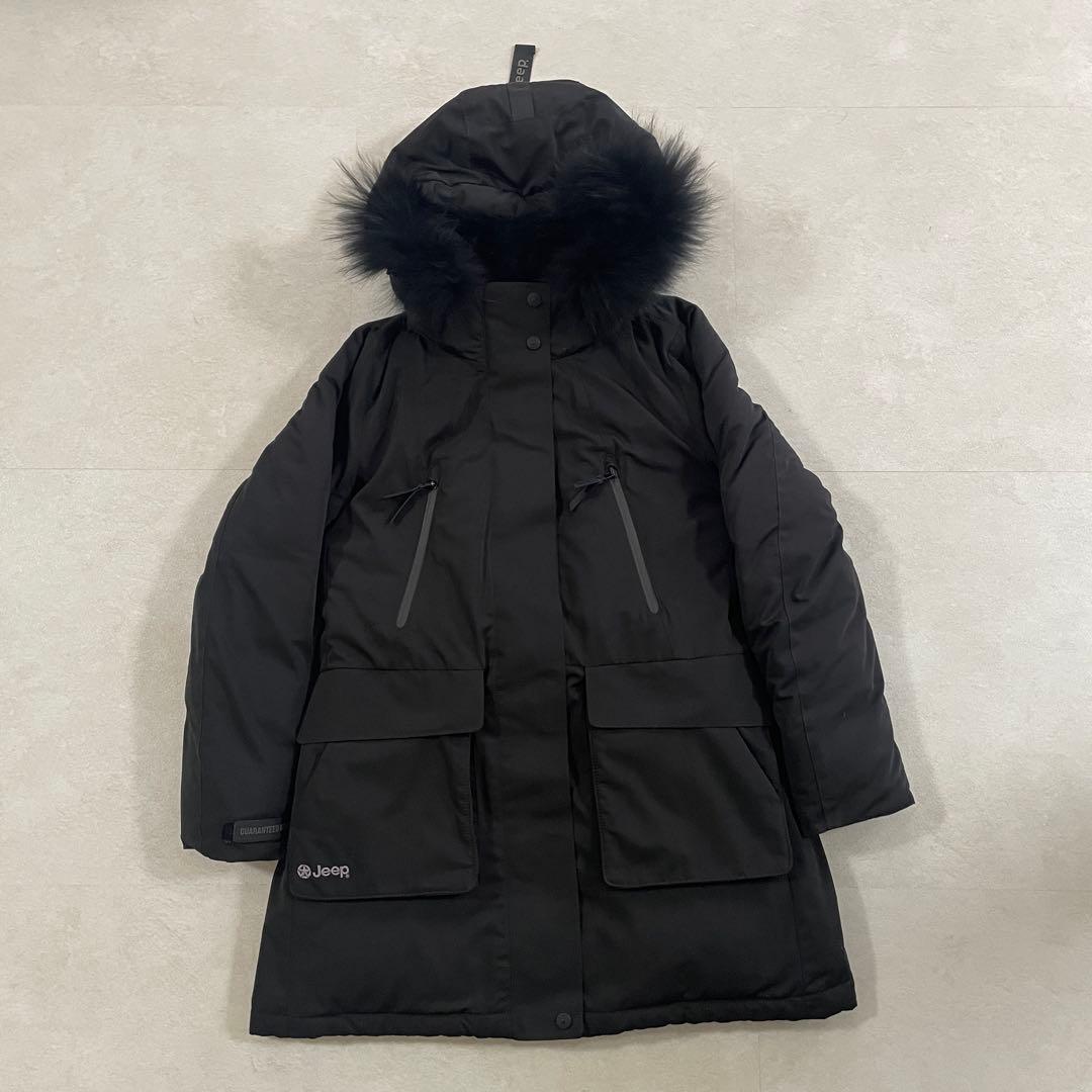 Jeep(ジープ)のファー付きダウンジャケットです。こちらは、アメリカの自動車ブランド【Jeep】の公式ライセンスを取得した、韓国発ブランドの製品となっています。ブラック生地にロゴパッチ、ロゴ刺繍が施されたシンプルなデザイン。採寸の方をよくご確認ください。