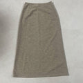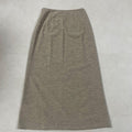 JURGEN LEHL(ヨーガンレール)のロングスカートです。シンプルなベージュ生地にファスナー付きが便利なデザイン。薄手で伸縮性もあり、履き心地もよくなっています。ベルトループやウエストゴムが無い商品のため、採寸の方をよくご確認ください。