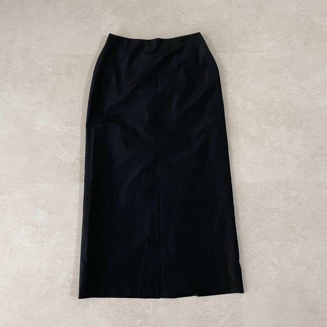 JURGEN LEHL(ヨーガンレール)のロングスカートです。シンプルでエレガントなブラック生地のロングスカート。ポケット付属の実用性ある商品です。採寸の方をよくご確認ください。