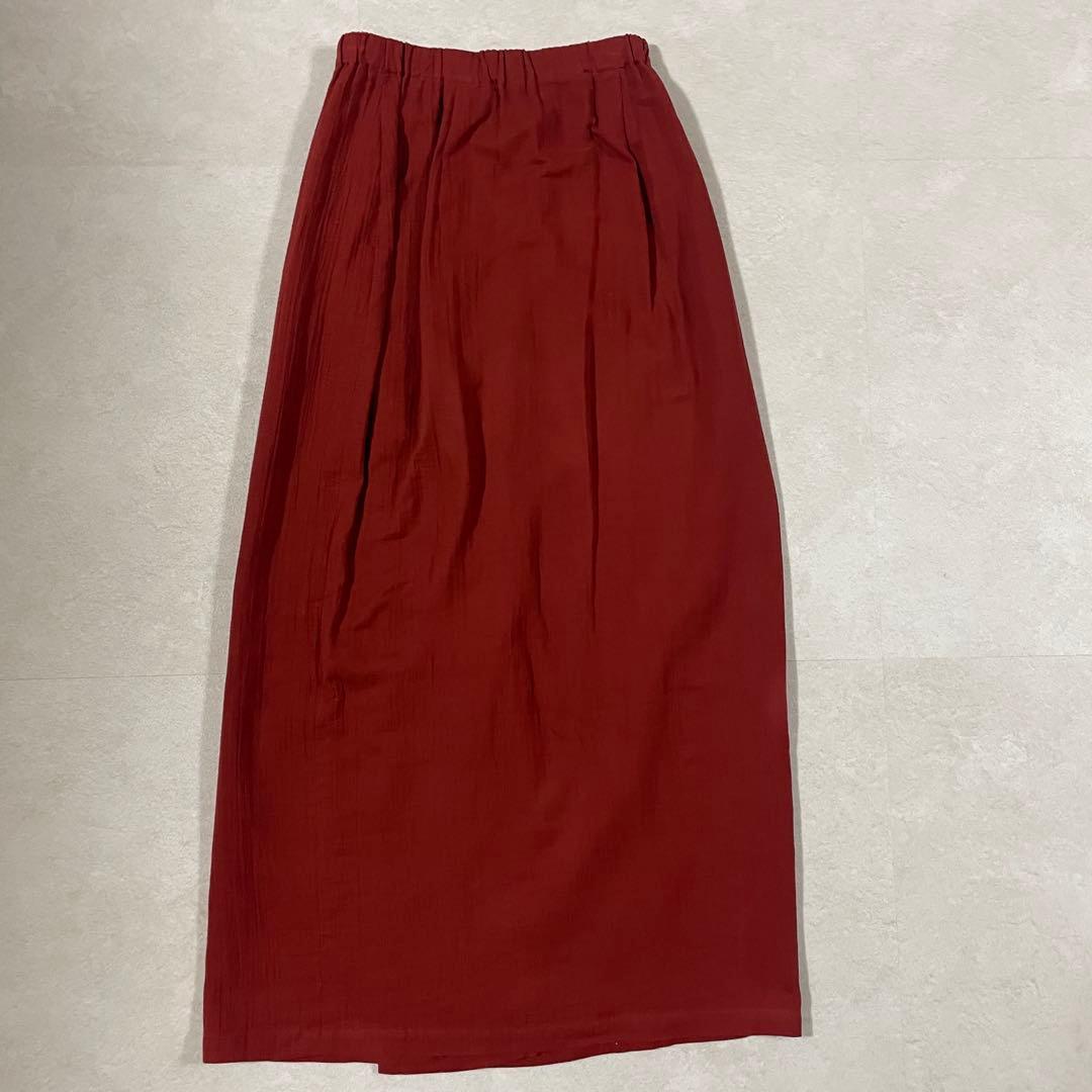 JURGEN LEHL(ヨーガンレール)のロングスカートです。深みのあるエレガントなレッド生地のロングスカート。裏側にスリット入り。採寸の方をよくご確認ください。
