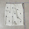 POLO RALPH LAUREN(ポロラルフローレン)のハーフパンツです。ホワイト生地にポニーロゴ刺繍の総柄が特徴的でオシャレな1枚。ポケット付属の実用性ある商品となっています。サイズは、キッズサイズですがレディースのXS相当と思われます。採寸の方をよく確認の上ご購入願います。