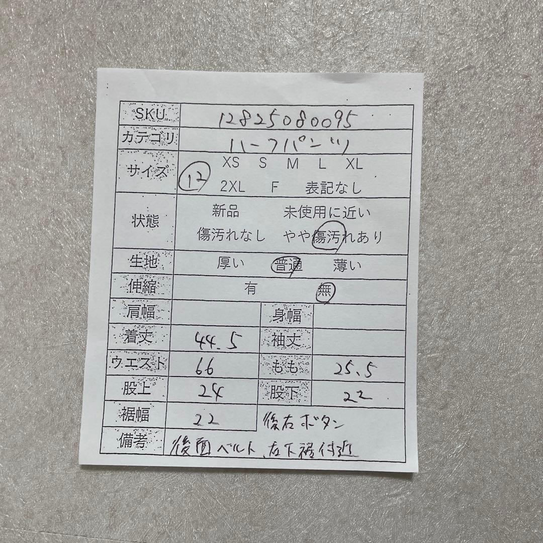 | 実寸 | ウエスト···66cm、股上···24cm、 股下···22cm、着丈···44.5cm |